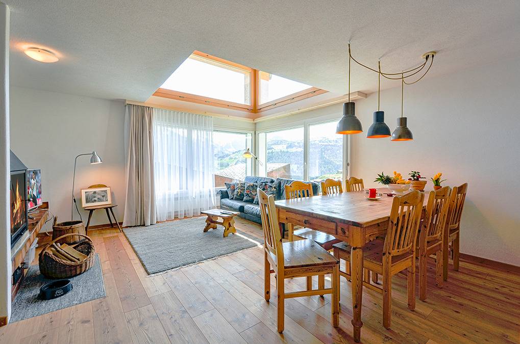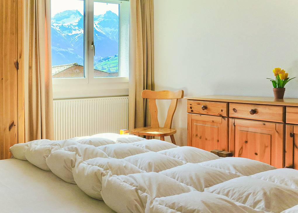 Bettwäsche, Handtücher vorhanden. Zusätzliche Leistungen: Kurtaxe im Preis inklusiv. Kostenloser Internetzugang über W-Lan. 2 Pkw-Stellplätze im Preis inklusive. Kinder Babybett/Hochstuhl, jeweils ohne Berechnung. Haustier 100 SFr/Aufenthalt (Anmeldung).Räume & Aufteilung