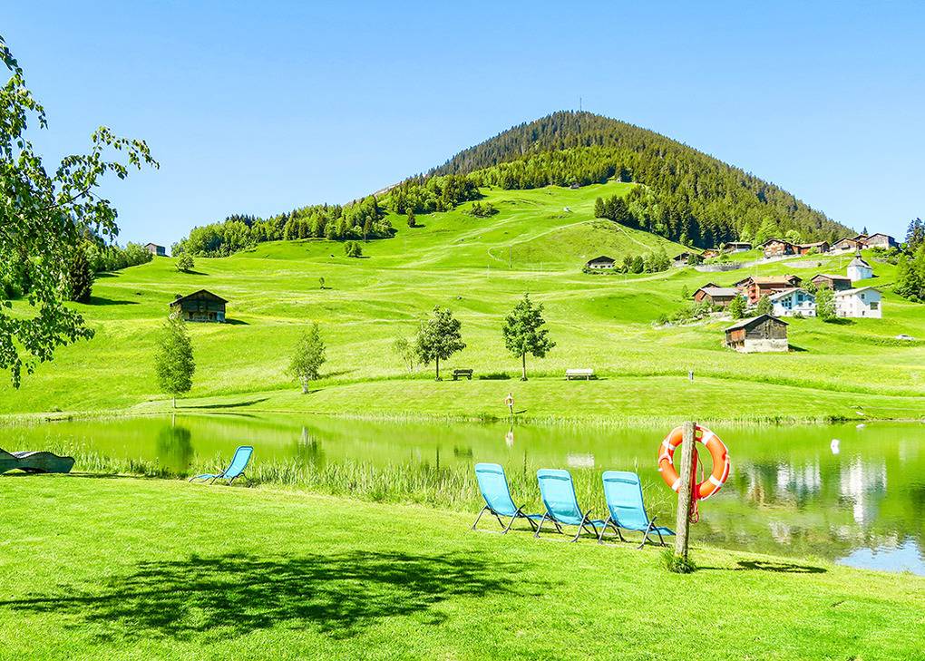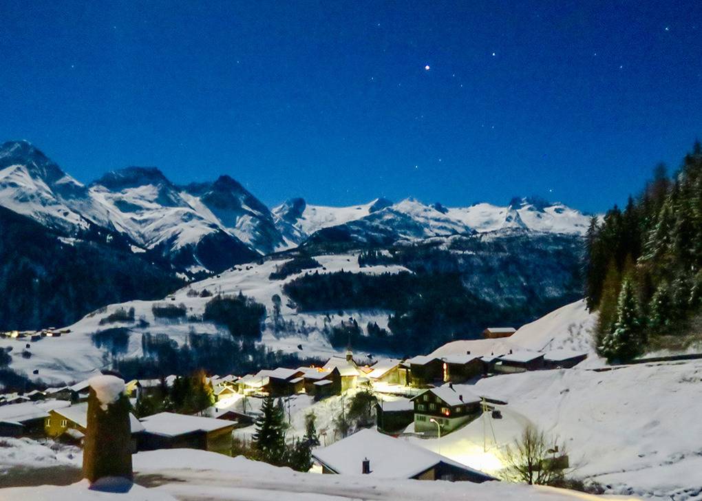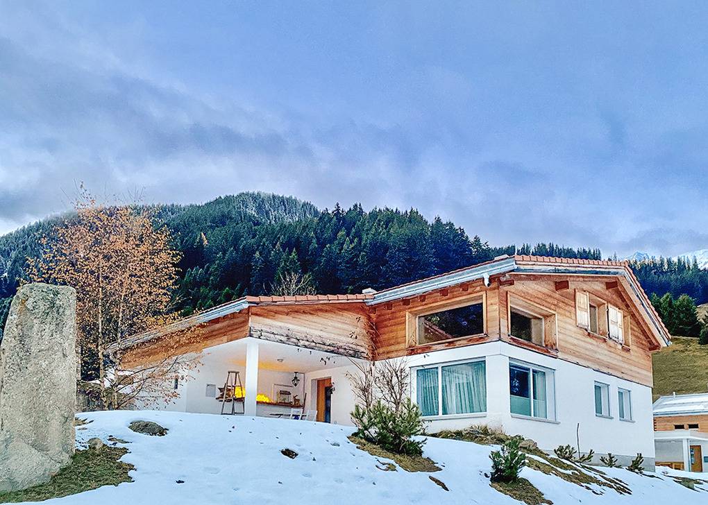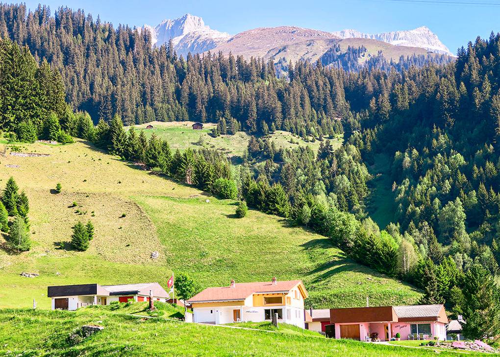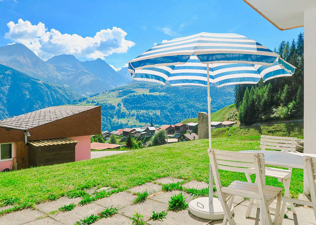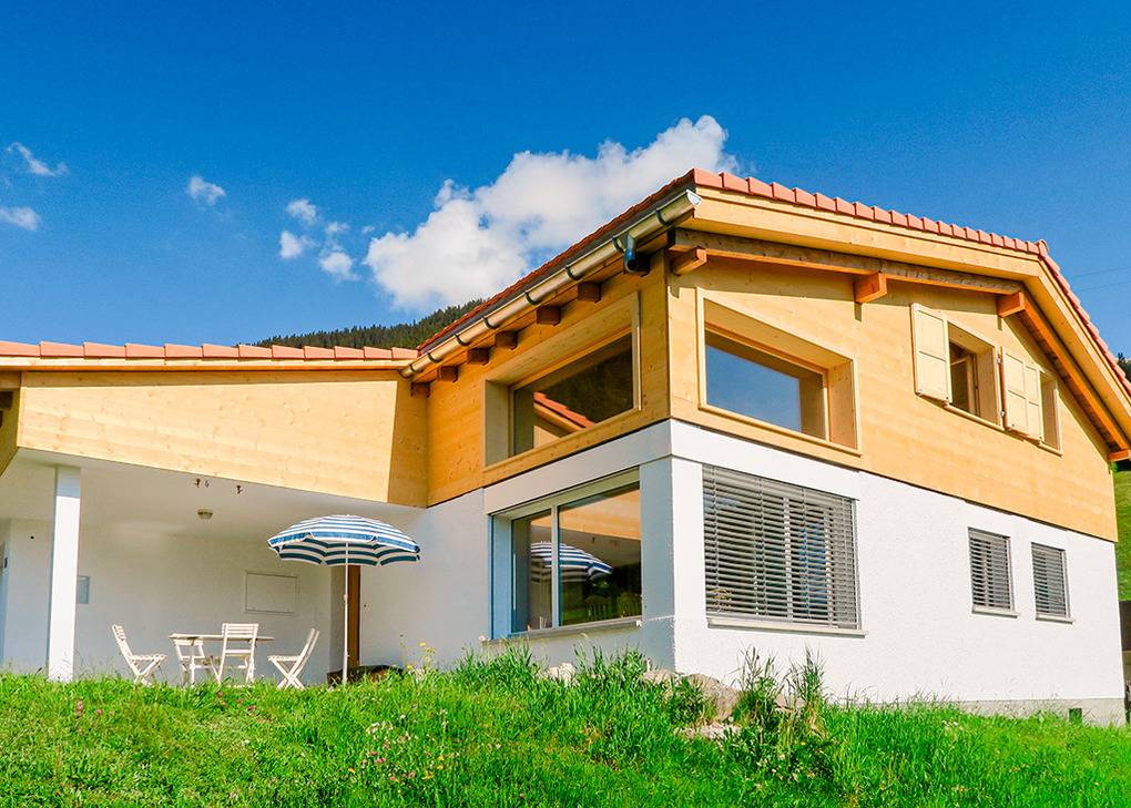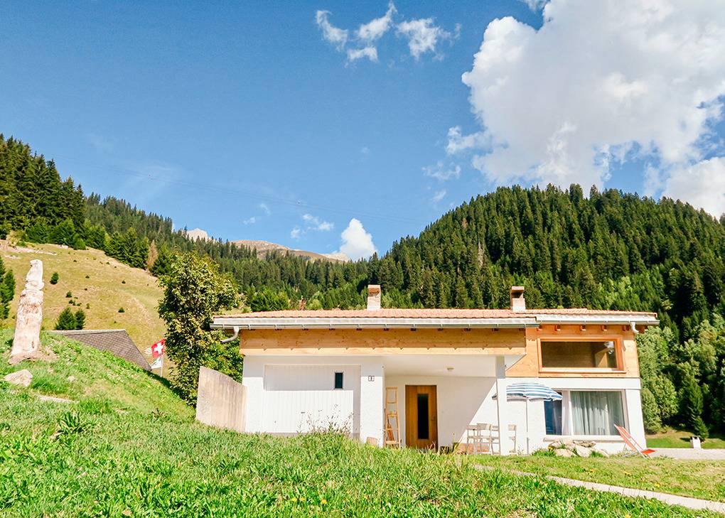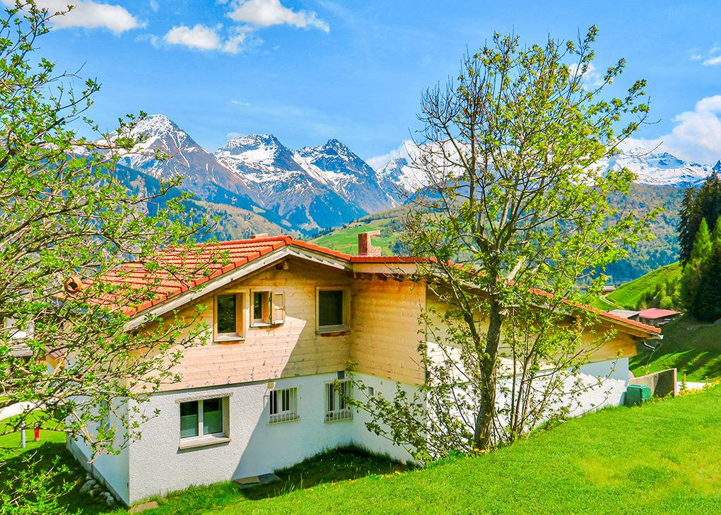 Ort: Disentis. Ruhige, sonnige Lage im Weiler Segnas umgeben von Almwiesen. Herrliche Aussicht auf die umliegende Bergwelt. Wanderwege durch die Rheinquellregion 150 m. SBB-Bahnhof Segnas 1 km. Ortsmitte Disentis 2,5 km. 1-2 Pkw-Stellplätze am Haus.