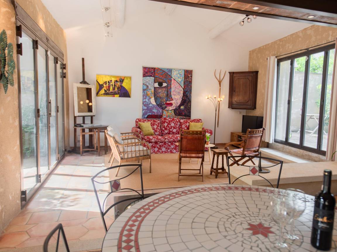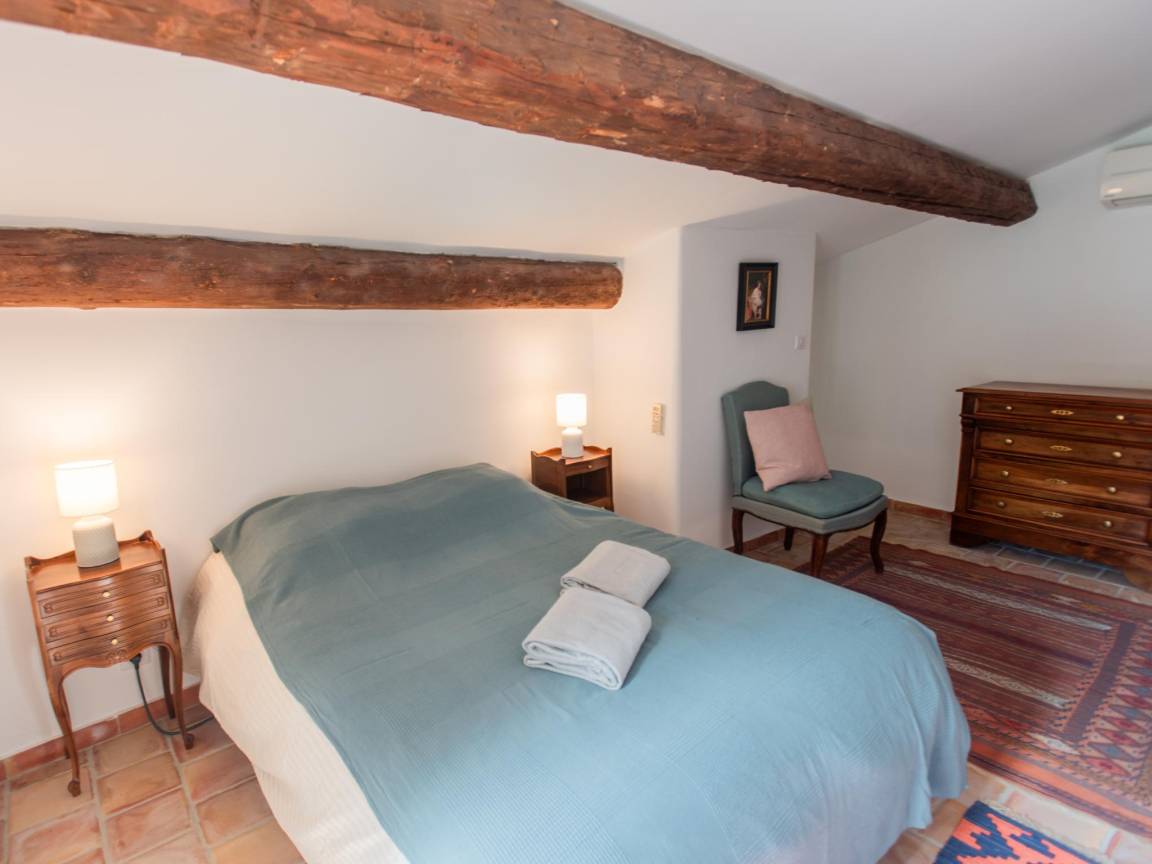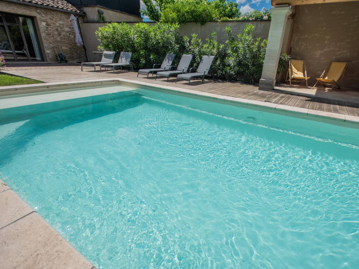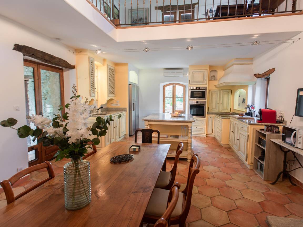 Hausbeschreibung : Erleben Sie den Charme dieses renovierten Bauernhauses nahe Séguret in der Vaucluse. Alte Elemente blieben erhalten, moderner Komfort ergänzt sie perfekt. Genießen Sie die Wohnküche mit Kamin, entspannen Sie im Sommerwohnzimmer mit Schiebetüren zum Innenhof und erfrischen Sie sich im eigenen Pool. Jedes Schlafzimmer hat ein eigenes Badezimmer. Umgeben von Weinbergen und provenzalischen Dörfern erwartet Sie hier das pure französische Lebensgefühl!