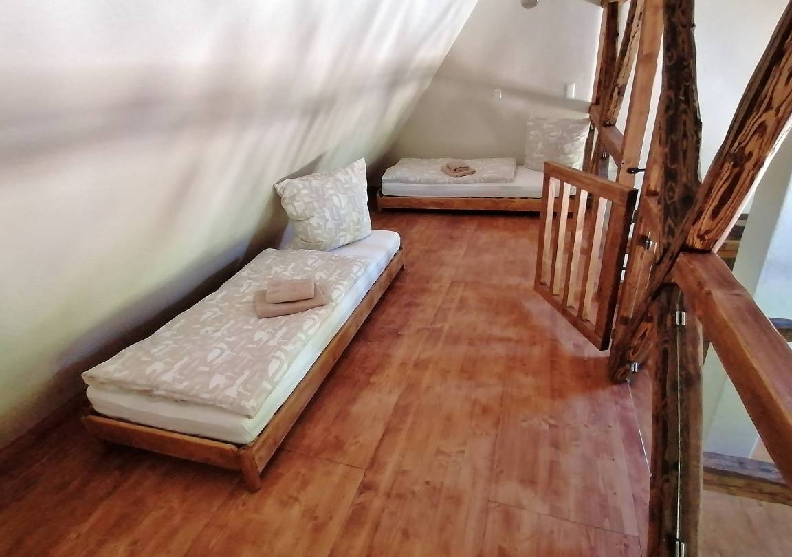 Diese Ferienwohnung verfügt über einen großen, hellen Wohn-, und Essbereich, einen separaten Elternschlafraum mit Doppelbett, sowie eine Schlafgalerie mit insgesamt 4 Einzelbetten.