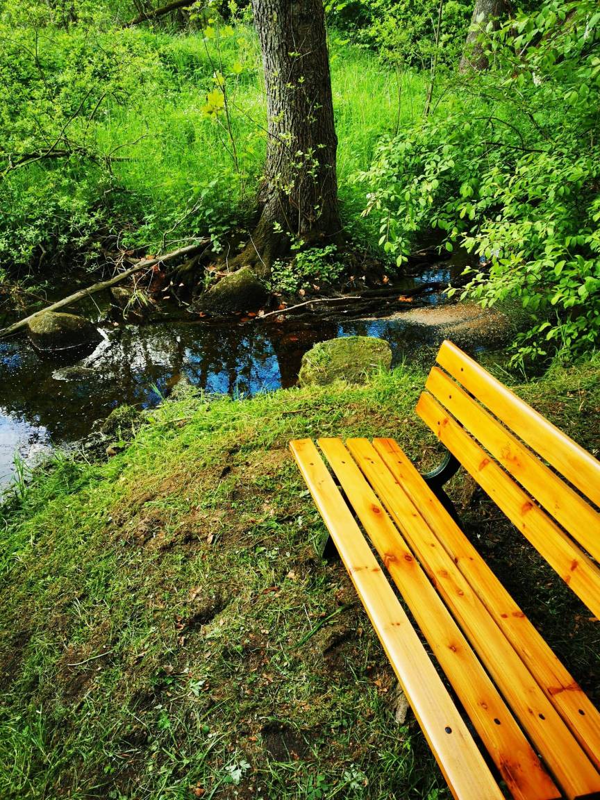 Idyllische Sitzplätze am Bachlauf der Selker Au – ideal zum Entspannen oder Füße abkühlen