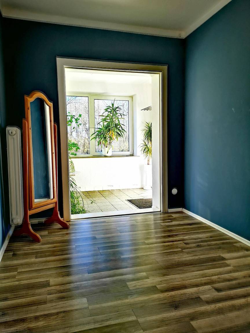 Die Wohnung verfügt über zwei Schlafzimmer, einen gemütlichen Wohnbereich mit Relaxliegen, einen hellen Wintergarten sowie eine voll ausgestattete Küche (inkl. Geschirrspüler, Mikrowelle und Herd). WLAN und TV sind ebenfalls vorhanden. Die eigene Terrasse mit Blick ins Grüne lädt zum Entspannen ein. Haustiere sind auf Anfrage willkommen.