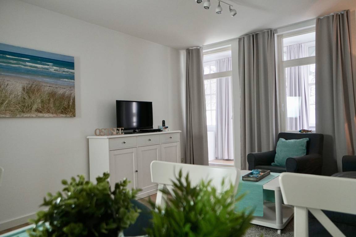 Dieses große Appartement verfügt über einen großen Wintergarten. Insgesamt bietet Ihnen diese Ferienwohnung auf 60 qm ausreichend Platz für 6 Urlaubsgäste. Im Wintergarten, den Sie vom Schlafzimmer oder großen Wohn- und Esszimmer aus erreichen, bietet Ihnen ein bequemes Schlafsofa zwei Schlafmöglichkeiten. Das Schlafzimmer verfügt über ein Doppelbett.