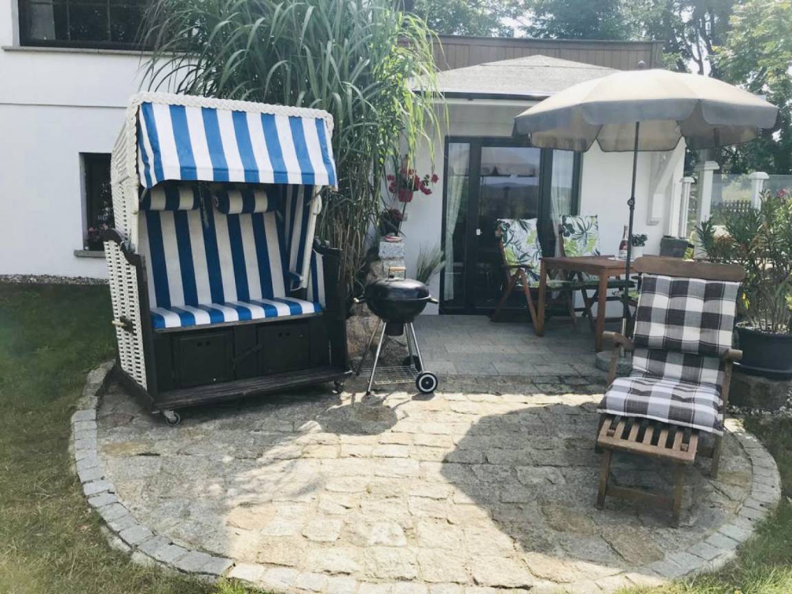 Genießen Sie Ihr Sonnenbad mit Blick von der Terrasse, aus den zur Verfügung stehenden Liegen oder dem hauseigenen Strandkorb. Für kulinarische Genüsse steht ein Grill bereit.