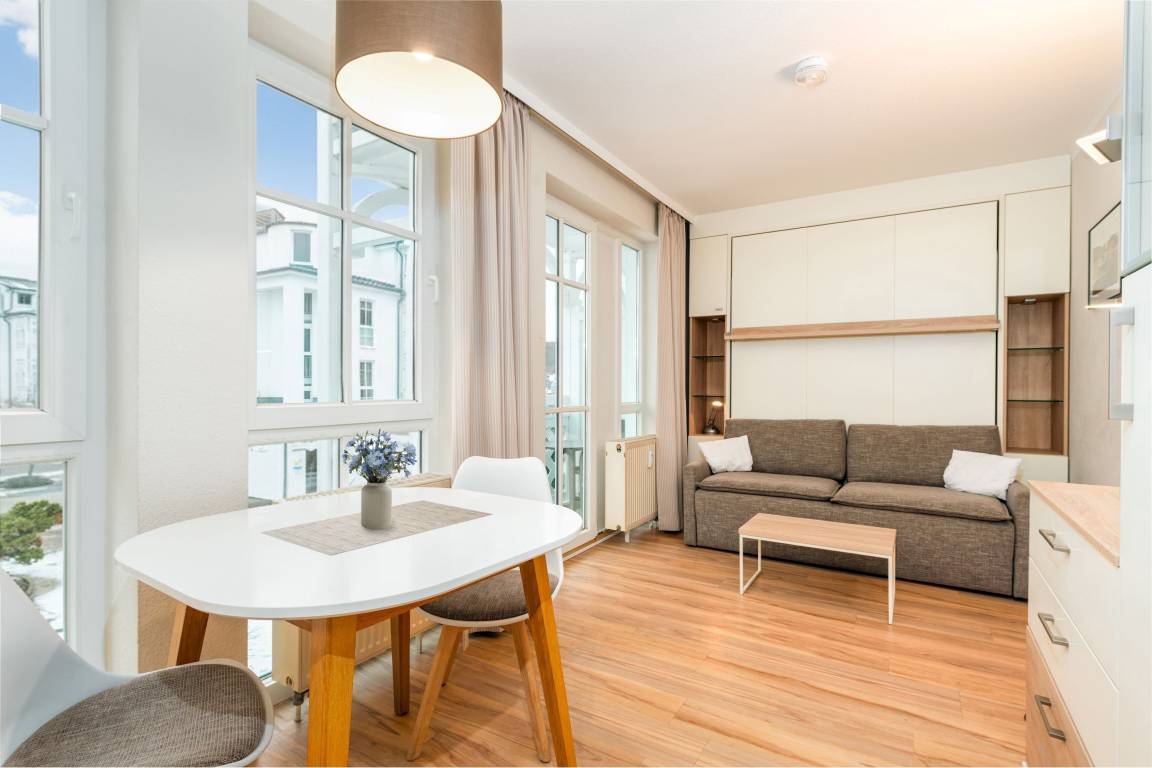 Die Ferienwohnung mit dem Namen "Fewo 531, Seepark Sellin" bietet auf 20 m² Platz für maximal 2 Personen. Sie befindet sich im Haus "Haus Göhren" in der 1. Etage.