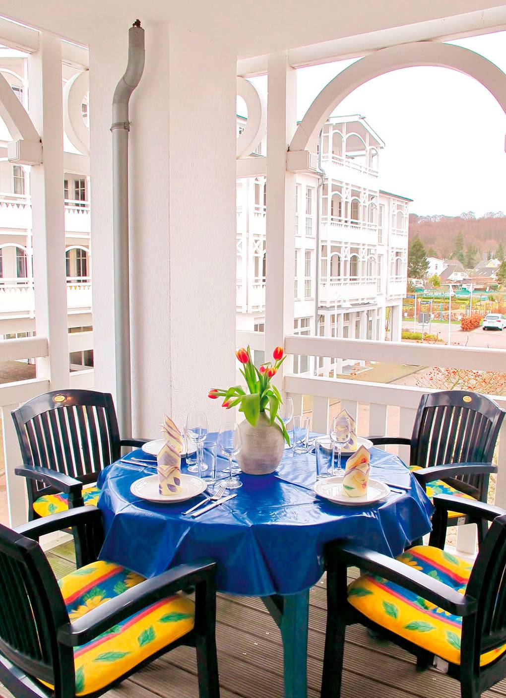 Haus: Ansprechende Fewo-Anlage mit gleichartigen Gebäuden im regionstypischen Stil der Bäderarchitektur. In der Anlage: diverse Geschäfte, Supermarkt, Fahrradvermietung, Bowling-Center, Restaurants, Cafés, Waschsalon. Kinderspielplatz. Mini-Golfplatz. Alle Ferienwohnungen mit freundlicher, geschmackvoller Einrichtung, alle mit gut ausgestatteter Küchenzeile. Kostenloser Internetanschluss (W-Lan). Zentralheizung. Fahrradkeller (gemeinschaftliche Nutzung). 1 Tiefgaragen-Parkplatz/Fewo. Neben der Anlage befindet sich das Erlebnisbad "Ahoi Rügen" mit 580 qm Wasserfläche (außen & innen), Kinderbecken, Rutsche (Länge 100 m!), Saunalandschaft, Dampfbad, Solarien, Whirlpools, Restaurants.