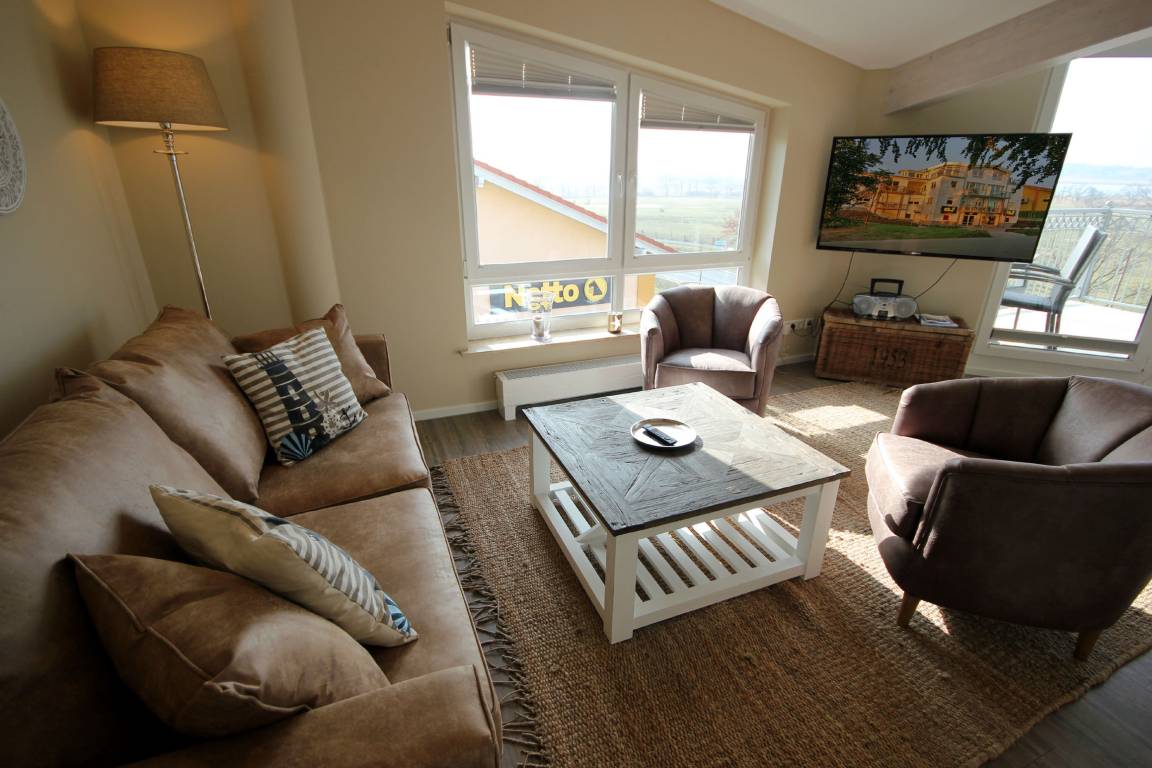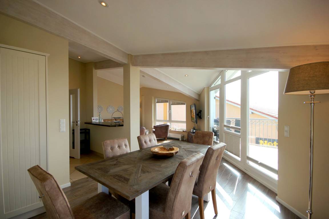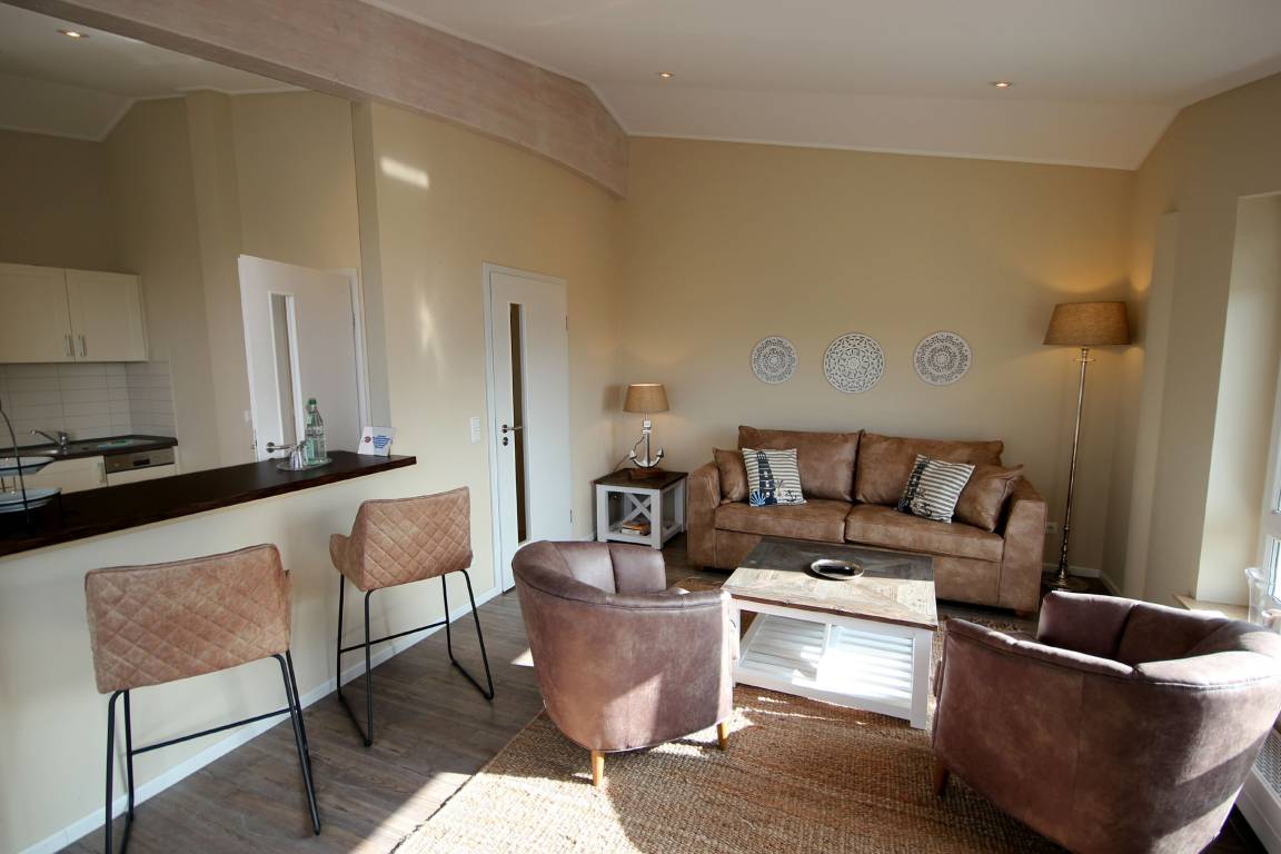Ihre großzügige 2-Zimmer Penthousewohnung 65RB13 Poseidon befindet sich im 2. Obergeschoss und ist ca. 80 qm groß. Die Nichtraucherwohnung verfügt über zwei Balkone und ist für bis zu 4 Personen gut geeignet. Neben dem gemütlich und geräumigen Wohnbereich mit Zugang zum Balkon mit Blick auf den Selliner See, gehört eine Sitzecke mit Schlaffunktion, ein Essbereich, Flachbild TV sowie WLAN. Im Schlafzimmer erwartet Sie ein Doppelbett, ein zusätzlicher TV, ein Kleiderschrank sowie ein weiterer Balkon in Richtung Osten. Zudem können Sie einen im Wohnbereich integrierten Küchentresen und eine voll ausgestattete Küchenzeile mit Geschirrspüler, Backofen, Wasserkocher, Toaster, Kaffeemaschine sowie umfangreiches Küchengeschirr nutzen. Das moderne Badezimmer erwartet Sie mit Waschtisch, WC und Dusche. Einen Parkplatz sowie eine Fahrradunterstellmöglichkeit befinden sich direkt am Objekt.