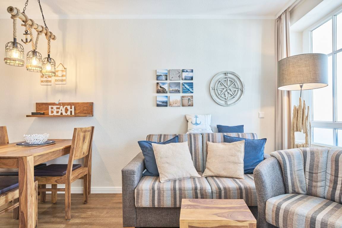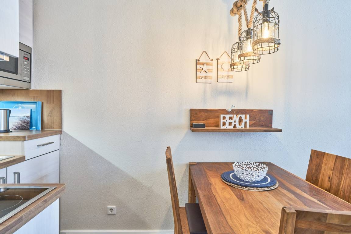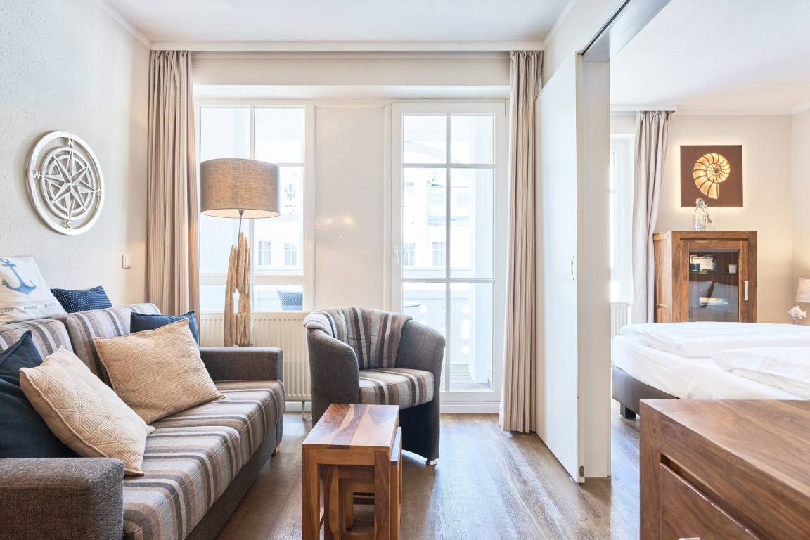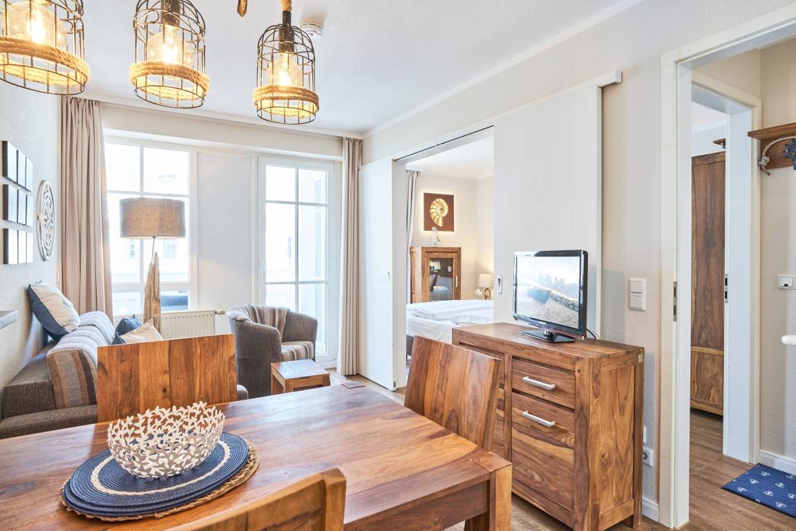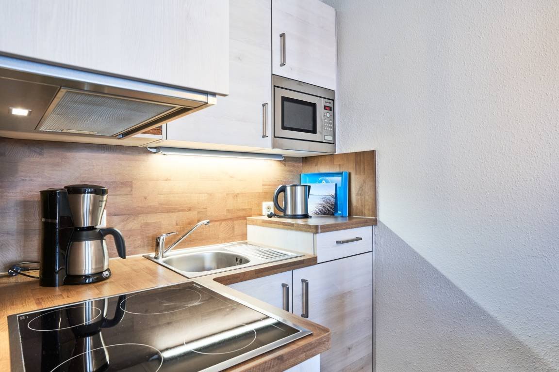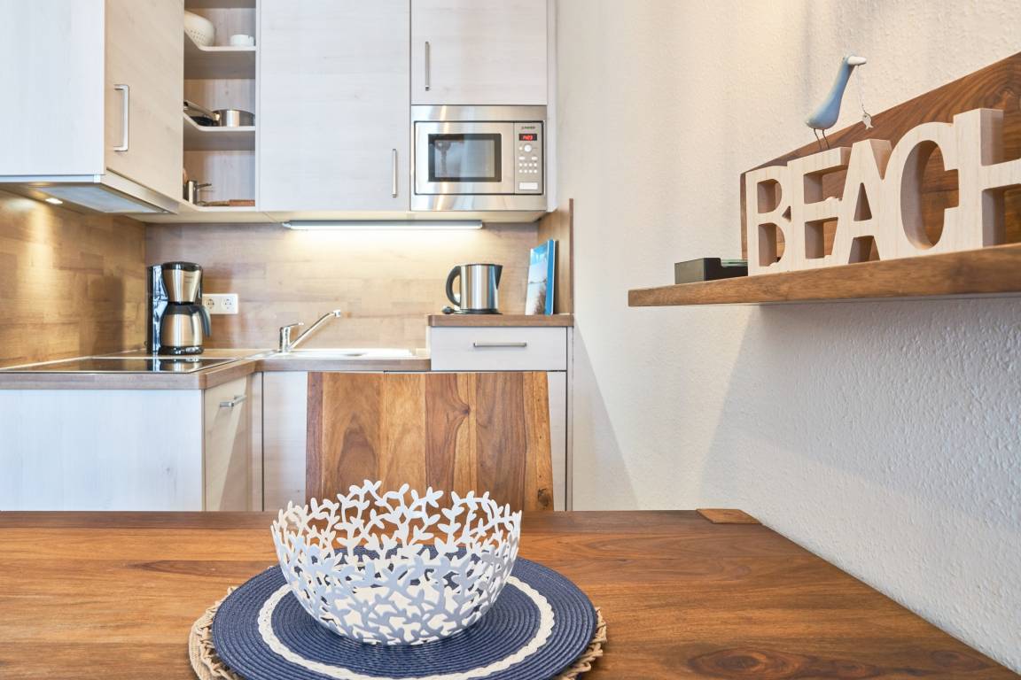 Die Ferienwohnung verfügt über kostenfreies WLAN und die Erstausstattung an Bettwäsche ist inklusive. Das Schlafzimmer mit Verdunklung verfügt über ein Doppelbett, im Wohnzimmer befindet sich zusätzlich eine Doppelschlafcouch. Darüber hinaus verfügt die Ferienwohnung über ein Bad mit Dusche/WC. Die voll ausgestattete, offene Küche mit Mikrowelle, Kaffeemaschine und Toaster lässt keine Wünsche offen. Ein Fernseher inkl. 3 Sky-Sender rundet die hochwertige Einrichtung ab. Nach einem erlebnisreichen Urlaubstag können Sie auf dem Balkon in Nordwestlage Platz nehmen. Der Ausblick und die Sitzgruppe sorgen hier für ein wunderbares Urlaubsgefühl. Im Nichtraucher-Apartment ist ein mitreisendes Haustier gestattet.