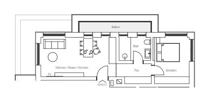 Einem separaten Wohn- und Schlafbereich sowie einem schönen Balkon.