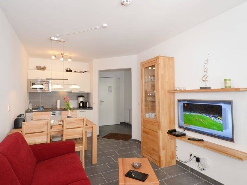 Der Wohnbereich ist ausgestattet mit Schlafcouchgarnitur, Stereoanlage, Kabel-TV und DVD Player. Die Ferienwohnung ist bequem über einen Fahrstuhl ereichbar.
