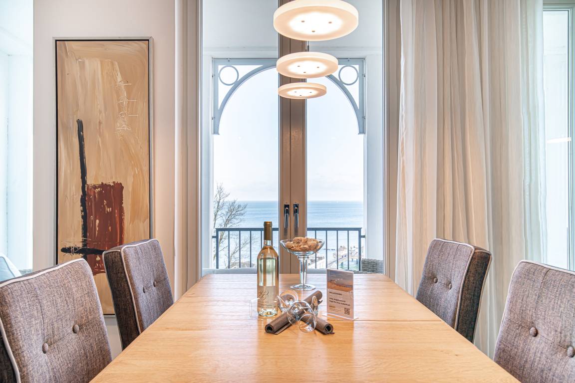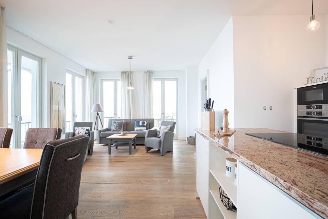 Die Ferienwohnung mit dem Namen "FIRST Seestern" bietet auf 86 m² [nbsp]Wohnfläche ausreichend Platz für bis zu 4 Personen. Sie befindet sich in der 3. Etage des Hauses "FIRST Sellin" und verfügt über 1 Schlafzimmer und 2 Badezimmer. Zur Ausstattung dieser schönen Wohnung gehört selbstverständlich auch ein Tiefgaragenstellplatz. Eine Kaffeemaschine und eine Spülmaschine stehen Ihnen in der Küchenzeile zur Verfügung. Aus der gesamten Wohnung genießen Sie einen traumhaften Panorama-Meerblick. Zusätzlich zum saisonal geöffneten Außenpool, steht Ihnen ganzjährig und kostenfrei ein Sky-Infinitypool (Indoor auf dem Dach des Gebäudes) zur Verfügung. Außerdem gibt es einen WLAN Anschluss, der Ihnen eine unkomplizierte Internetnutzung ermöglicht. Entspannung finden Sie auch im hauseigenen Saunabereich, welcher ebenfalls kostenfrei zur Ausstattung gehört. Die Ferienwohnung ist sowohl für Familien als auch für Radfahrer geeignet. Die Ortsmitte ist nur ca. 100 m entfernt und der Strand ist nur ca. 80 m entfernt. Ebenso befinden sich eine Vielzahl sehr guter Restaurants in unmittelbarer Nähe. Hier bleiben also keine Wünsche offen.
