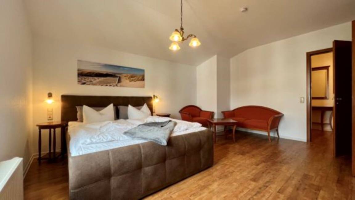 Die helle Wohnung 21 in der Villa Sonneck sorgt durch die drei separaten Schlafbereiche für genügend Privatsphäre im Familienurlaub. Eines der drei Schlafzimmer ist mit einem Boxspringbett (180 x 200 cm), einem TV und einem großzügigen Kleiderschrank ausgestattet, der zweite Schlafbereich bietet ebenso ein Boxspringbett (180 x 200 cm). Im dritten Schlafbereich befindet sich ein Einzelbett (Boxspringbett, 90 x 200cm) und ein kleiner Nachttisch. Ein separater TV ist in 2 der Schlafzimmer vorhanden.