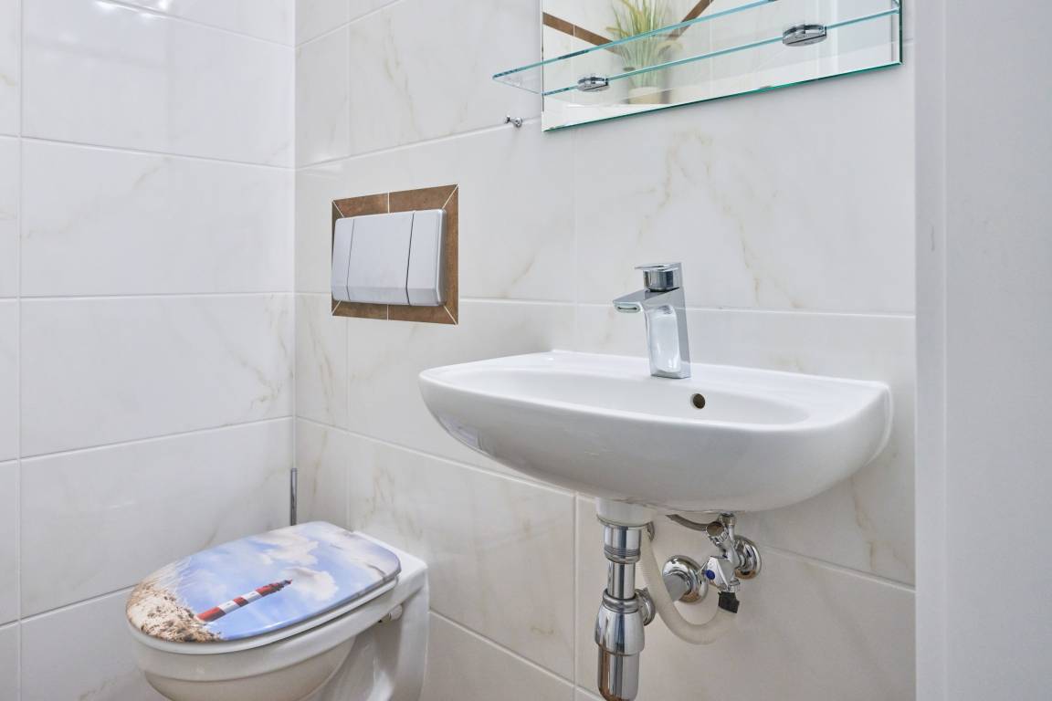 Für Unterhaltung sorgt ein TV-Flachbildgerät mit Sky-Sendern und auch ein WLAN Anschluss ist vorhanden. Für entspannte Stunden im Freien steht Ihnen ein Balkon zur Verfügung. Gerne dürfen Sie auch Ihr Haustier mitbringen.