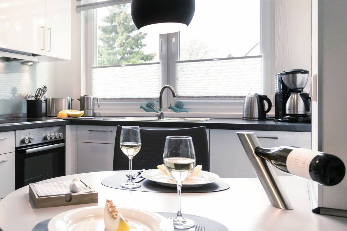 Die Ferienwohnung „Einkehr"**** ist ein modernes und liebevoll ausgestattetes Urlaubsdomizil. 2 Erwachsene und 1 Kind bzw. Jugendlicher finden in den lichtdurchfluteten Räumlichkeiten mit Terrasse in Süd-Westausrichtung inklusive Gartennutzung Platz. Es erwarten Sie sämtliche Annehmlichkeiten, angefangen von Rolläden zur Beschattung und Verdunkelung über Fußbodenheizung und Echtholzparkett bis hin zu einem hochwertigen Duschbad inkl. Bidet. Für die kleinsten Gäste stehen nach vorheriger Anmeldung ein Kinderreisebett und ein Hochstuhl kostenfrei zur Verfügung. Die komfortable Einbauküche bietet, genau wie die anderen ausgesuchten Ausstattungsgegenstände, beispielsweise das Funktionssofa von Brühl oder Möbel von Hülsta, ein besonders behagliches Ambiente mit hohem Wohnkomfort.