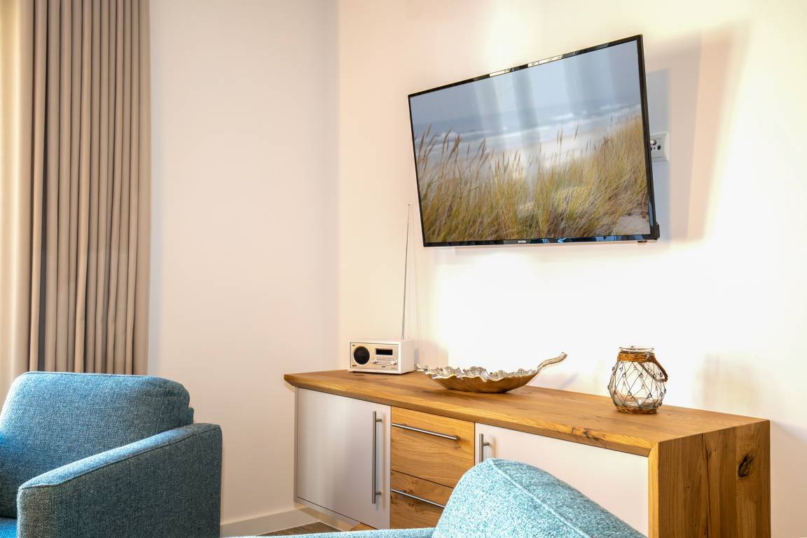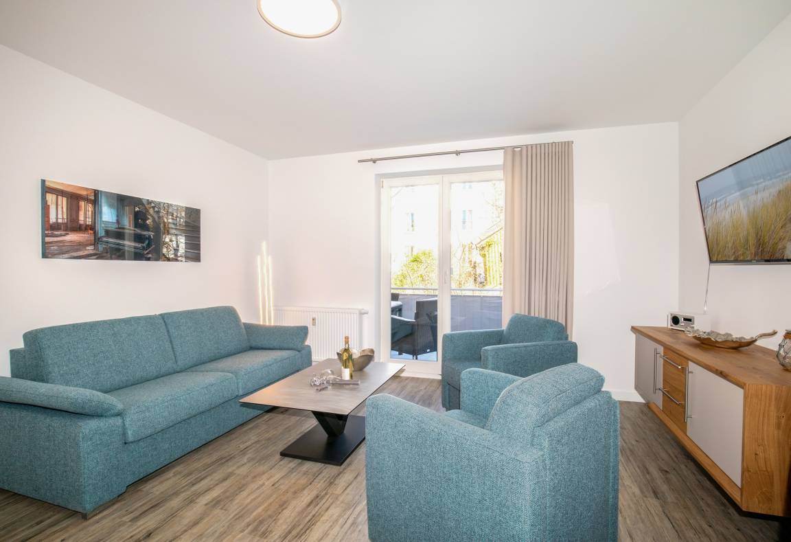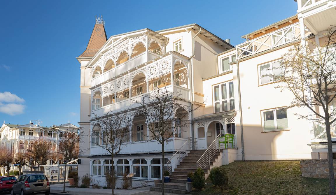 Im ersten Obergeschoss der "Villa Sonneck" begrüßt Sie dieses schöne Domizil. Die Ferienwohnung wurde im Frühjahr 2023 komplett saniert. Direkt an Sellin's Prachtstraße -der Wilhelmstraße- gelegen, bietet diese Unterkunft einen tollen Startpunkt um die unzähligen Restaurants und den feinsandigen Ostseestrand zu erkunden. Auf gut 65qm Wohnfläche, unterteilt in Wohnzimmer mit Schlafcouch, 2 Schlafzimmer sowie Duschbad, bietet diese Wohnung ausreichend Platz für bis zu 6 Personen. Per Lift erreichen Sie den Saunabereich im Untergeschoss des Hauses, welcher an kalten Tagen für wohltuende Wärme sorgt. Hier gibt es auch einen direkten Zugang zum hauseigenen Restaurant (Italiener), welches die Gäste gerne mit diversen Köstlichkeiten versorgt. Ebenso befinden sich Waschmaschine und Trockner auf dieser Etage. Für Ihren PKW ist ein kostenfreier Stellplatz auf dem Parkplatz des Hauses reserviert. In der Wohnung gibt es kostenfreies W-Lan/Internet. Der große Balkon der Wohnung bietet ausreichend Platz für 6 Personen und lädt an schönen Sommertagen zum gemütlichen verweilen ein.