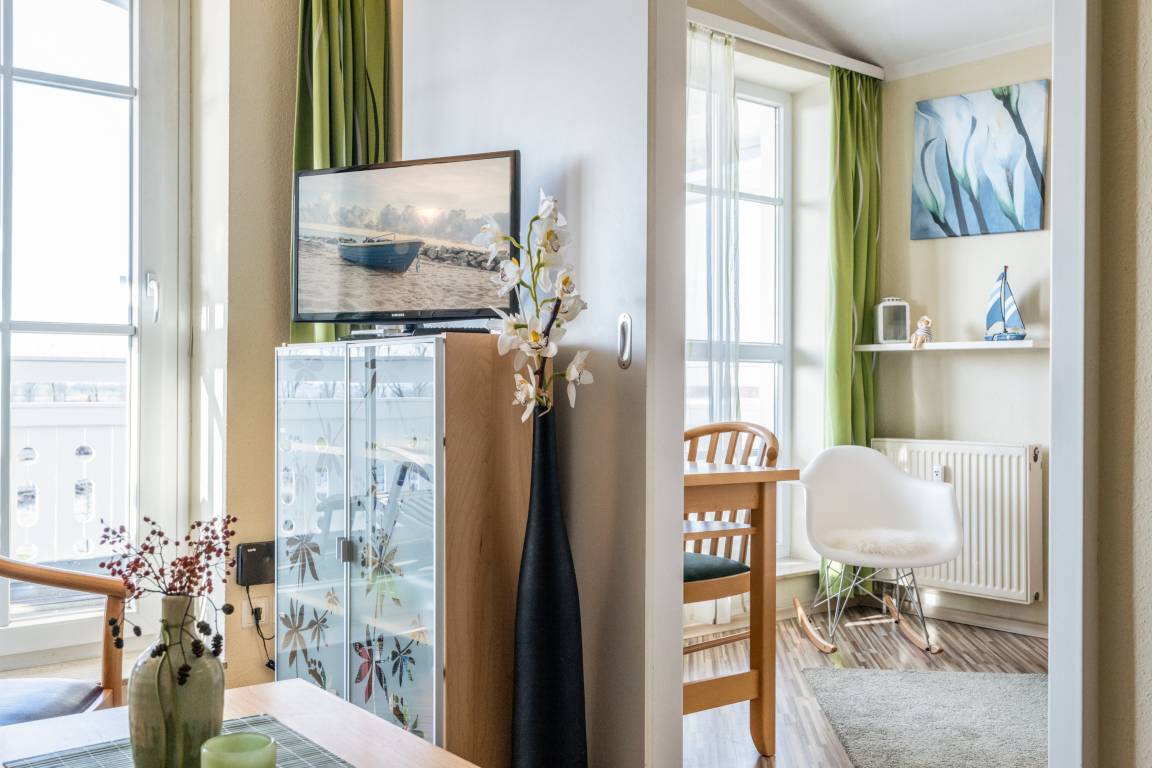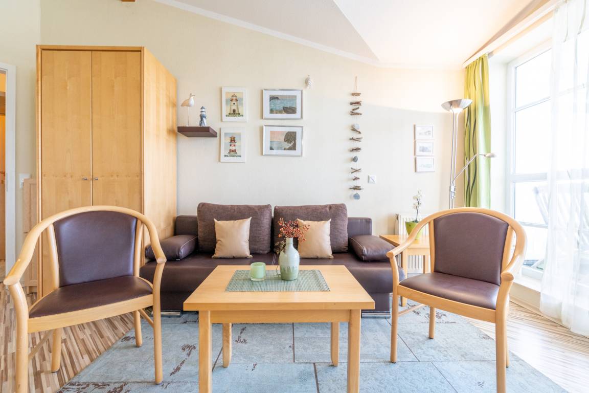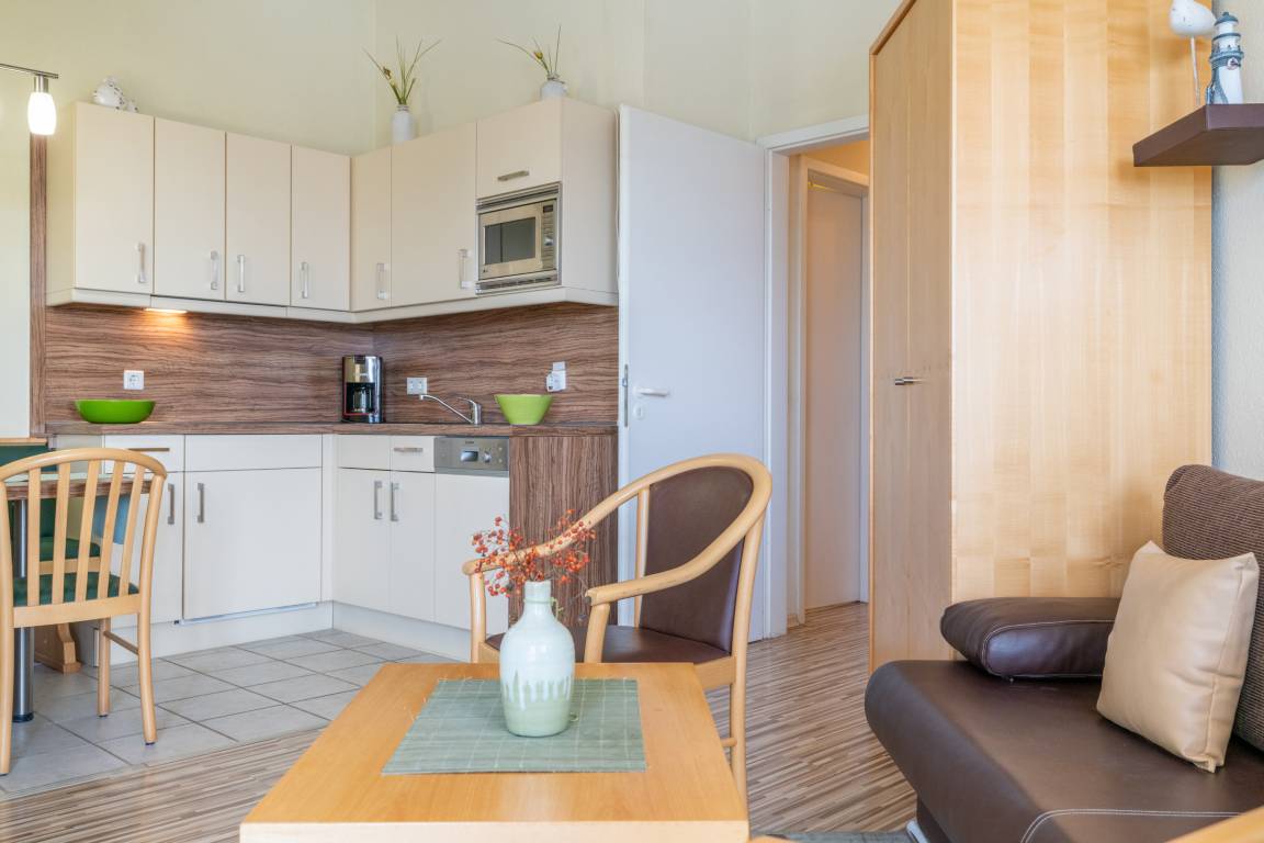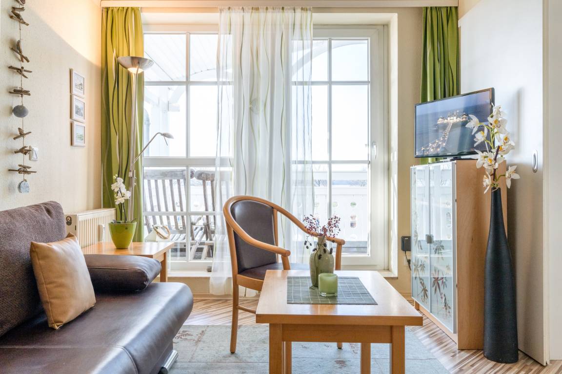 Nach einem erlebnisreichen Urlaubstag können Sie auf dem Balkon in Südwestlage Platz nehmen. Der Ausblick und die Sitzgruppe sorgen hier für ein wunderbares Urlaubsgefühl. Im Nichtraucher-Apartment sind keine Haustiere gestattet.