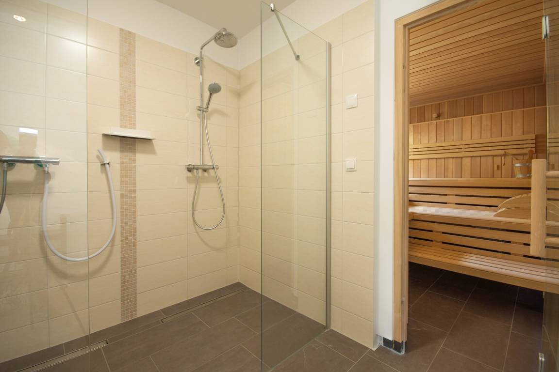 Der moderne Saunabereich befindet direkt im Nebenhaus und kann mit den weiteren Besuchern des Hauses gemeinschaftlich genutzt werden (1 € / 10 Minuten).