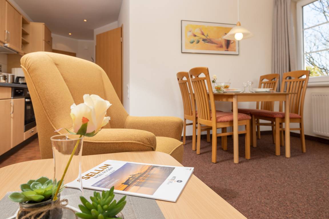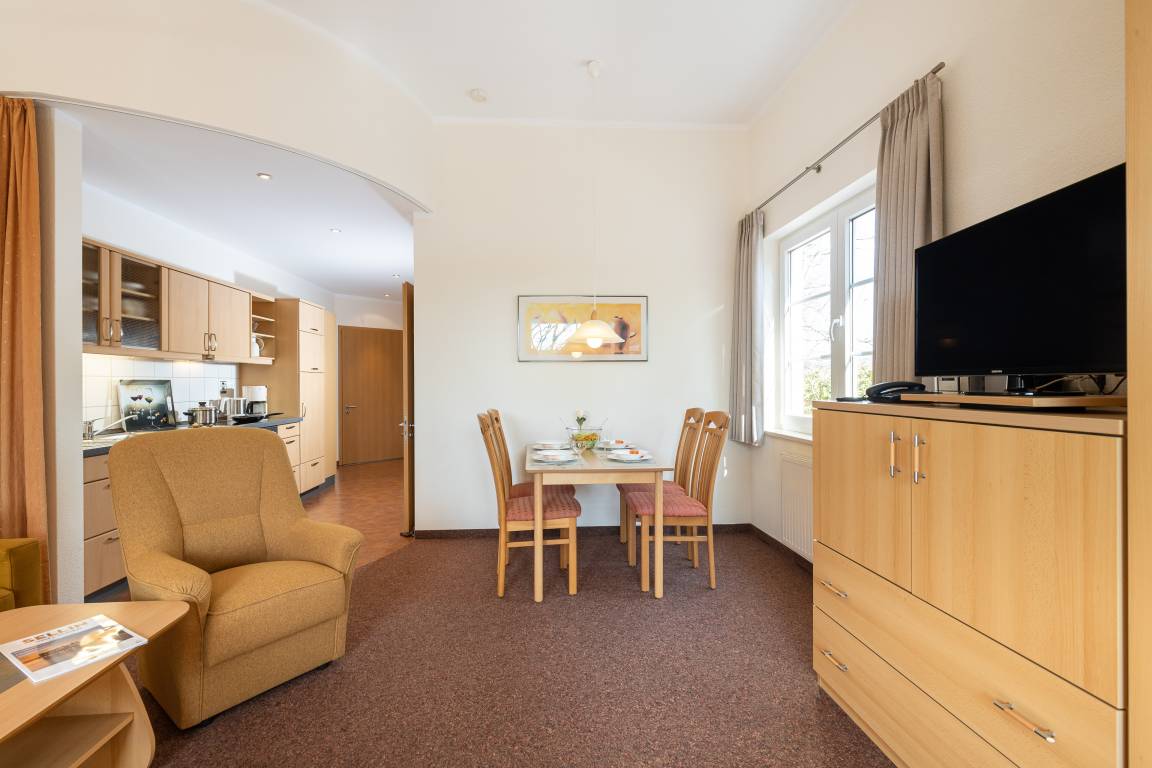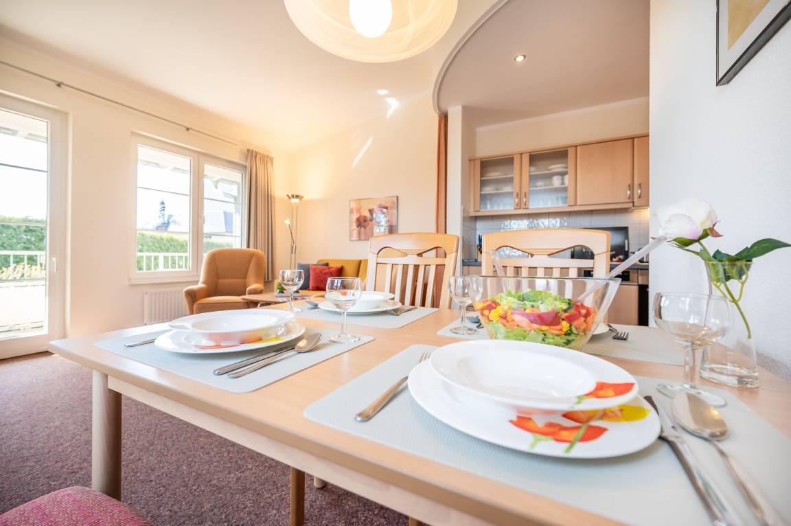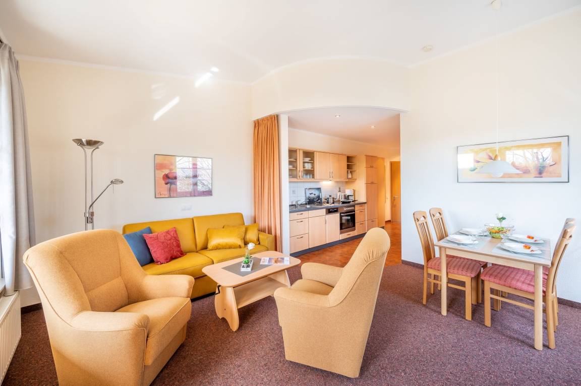 Die freundlich eingerichtete Wohnung 19 in der Ferienanlage Margaretha ist ca. 58 m² groß und für bis zu 4 Personen ausgelegt.