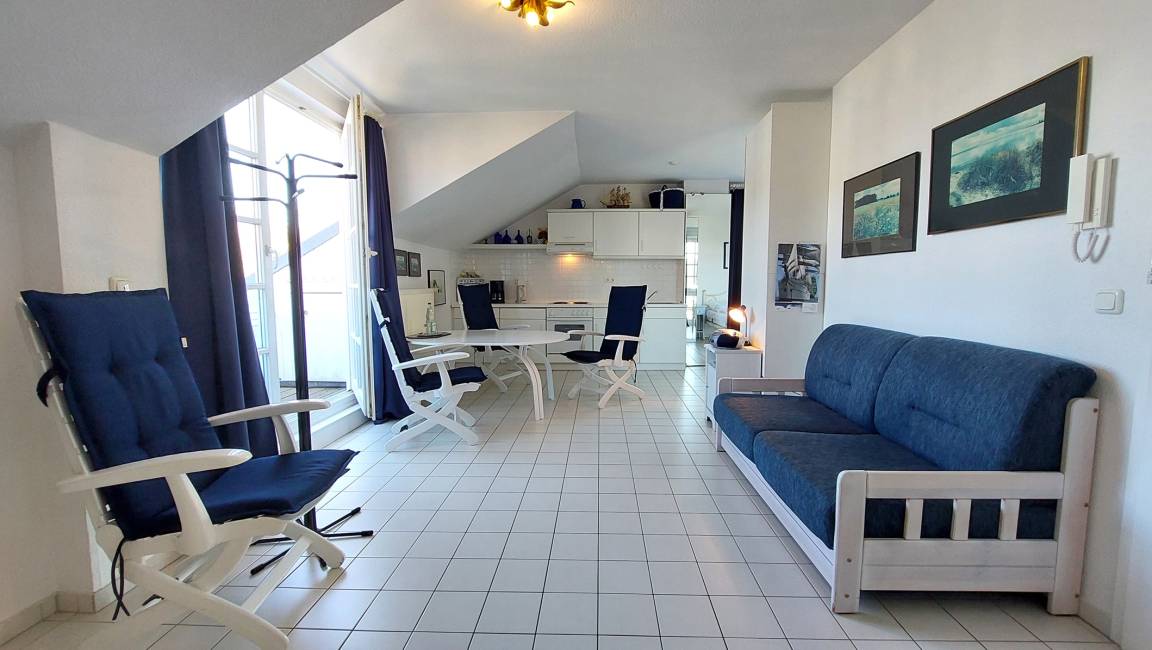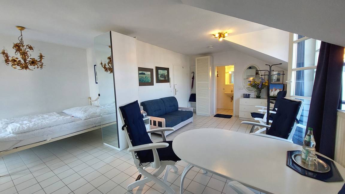Ihre freundliche 1-Raum Ferienwohnung 61RB24 befindet sich in der 3. Etage. Sie hat eine Größe von ca. 30 qm und ist für max. 2 Personen eingerichtet. Die Wohnung verfügt über einen kombinierten Wohn- und Schlafraum, eine Küchenzeile und ein Badezimmer. Ein Doppelbett, 1,40 m breit, steht unseren Gästen zur Verfügung, sowie ein gemütlicher separater Essplatz. Ebenso kann ein schöner Nordostbalkon mit Blick über Sellin genutzt werden. Zum Badezimmer gehört eine komfortable Dusche, Waschtisch und WC. Im Wohnbereich finden Sie ein CD-Radio, TV mit Videofunktion, ein gratis WLAN-Netz, einen Kleiderschrank und eine kleine Garderobe im Flur. Zur Küchenzeile gehört unter anderem ein 4-Platten Herd, Backofen, Toaster, Wasserkocher, Kaffeemaschine sowie das benötigte Inventar. Ein wohnungseigener PKW-Parkplatz steht Ihnen in der Tiefgarage, 1,89 m Höhe, kostenfrei zur Verfügung.
