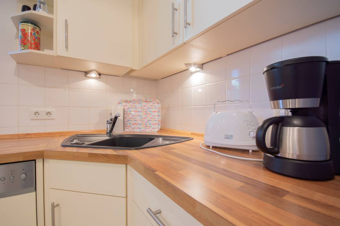Die voll ausgestattete Küche verfügt über zahlreiche Kleingeräte, wie einen Toaster, einen Wasserkocher, eine Kaffeemaschine, Senseo und vieles mehr. Auch ein Backofen, ein Ceranfeld, ein Geschirrspüler und ein Kühlschrank mit großem Gefrierabteil legen Ihnen die Möglichkeit offen, gemeinsame Kochabende mit der ganzen Familie, oder Freunden zu verbringen. In dem Hauswirtschaftsraum stehen Ihnen eine Waschmaschine und ein Staubsauger zur Benutzung bereit.