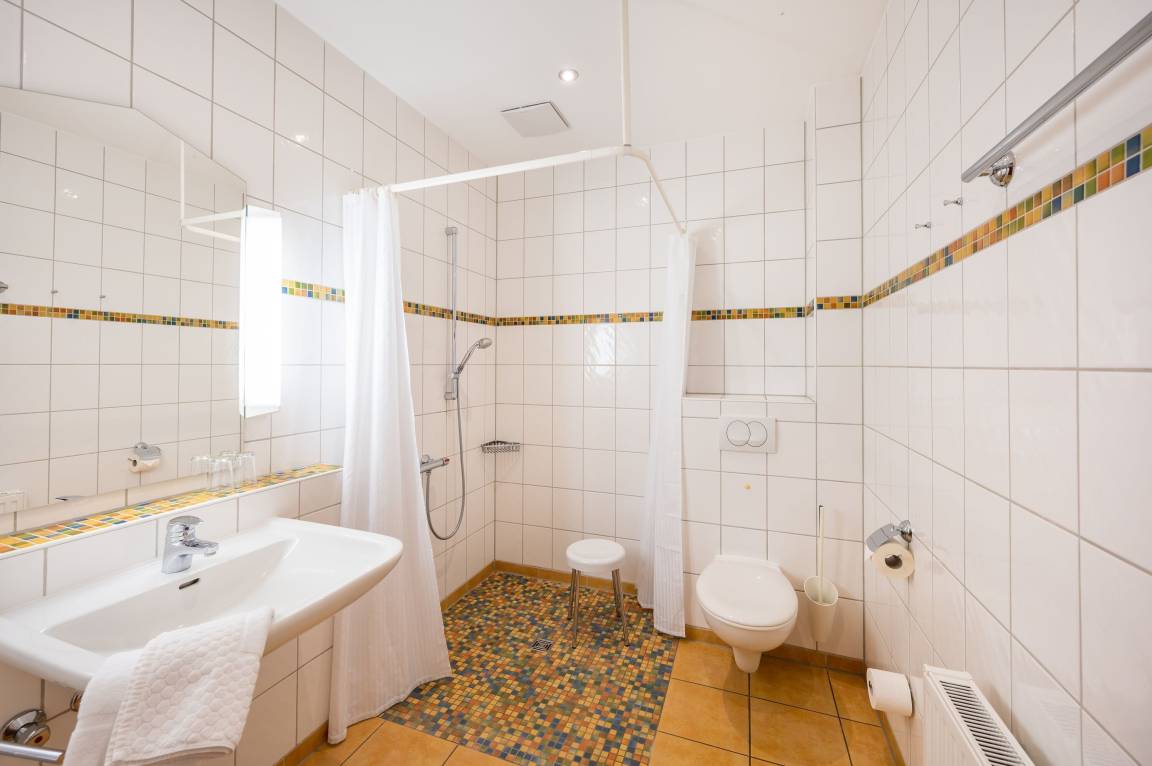 Die behindertenfreundliche Nichtraucherwohnung befindet sich im Hinterhaus der Ferienanlage Margaretha. Zur Anlage gehört pro Wohnung ein Parkplatz auf dem Hof, sowie ein gemeinschaftlicher Fahrradraum.