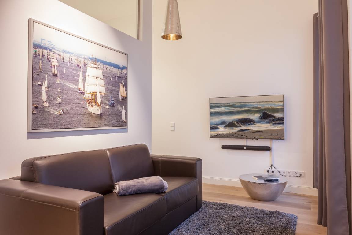 In der Ferienwohnung genießen Sie alle Vorzüge und Annehmlichkeiten eines exklusiven Feriendomizils, angefangen von flächendeckender Fußbodenheizung, einem eleganten Ledersofa, einem herrlich bequemen Lederpolsterbett (1,80 x 2,00 m) und hochwertigster TV- und Unterhaltungstechnik inkl. kostenfreiem W-LAN bis hin zur hervorragend ausgestatteten Markenküche und zum luxuriösen Duschbad. Auch ein Festnetztelefon steht Ihnen gegen gesonderte Gebührenerstattung zur Verfügung. Daneben sind es aber vor allem auch die ausgewählten Details, die die Liebe und Sorgfalt zeigen, mit der die Eigentümer das Ferienwohnung für Sie, liebe Gäste, eingerichtet haben. Angenehmes Licht, dezente Farben, stimmungsvolle Bilder, stilvolle Dekorationen. Kurzum: Wirklich ein Ort zum Wohlfühlen und Genießen!