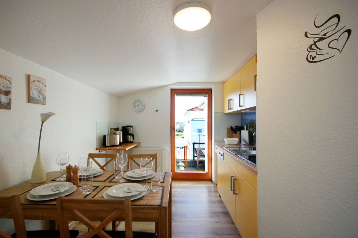 Ihre 3-Raum Nichtraucherwohnung 64RB1 befindet sich im 1. Obergeschoss des Hauses und somit in der Endetage. Sie besitzt eine Größe von ca. 55 qm und ist für max. 4 Personen belegbar sowie komplett eingerichtet. Das Appartement teilt sich auf in einen gemütlichen Wohnbereich mit bequemer Sitzecke, separate Küche mit Zugang zum sonnigen Balkon, zwei separate Schlafzimmer und ein Tageslichtbad. Neben dem schönen Wohnraum mit Flachbildfernseher, WLAN und Radio mit CD-Player sind beide Schlafräume mit je einem Doppelbett, Kleiderschrank und Verdunklungsmöglichkeit ausgestattet. Ein Schlafzimmer verfügt über ein zusätzliches TV-Gerät. Die Küche mit Essplatz für 4 Personen ist komplett mit Cerankochfeld, Dunstabzugshaube, Kühlschrank, Geschirrspüler, Kaffeemaschine, Wasserkocher, Toaster und weiteren diversen Küchenhelfern eingerichtet. Im modernen Badezimmer erwartet Sie eine Dusche, WC, fest installierter Fön und ein Waschbecken. Als weiteres Highlight steht Ihnen im gemeinschaftlichen Gartenbereich eine extra Grillecke zum Verweilen sowie ein Spielturm mit Rutsche und Schaukeln zur Verfügung. Ein wohnungseigener PKW – Stellplatz sowie Unterstellmöglichkeiten für Ihre Fahrräder sind direkt am Haus vorhanden. Eine hauseigene Waschmaschine steht Ihnen gegen Gebühr zur Verfügung.