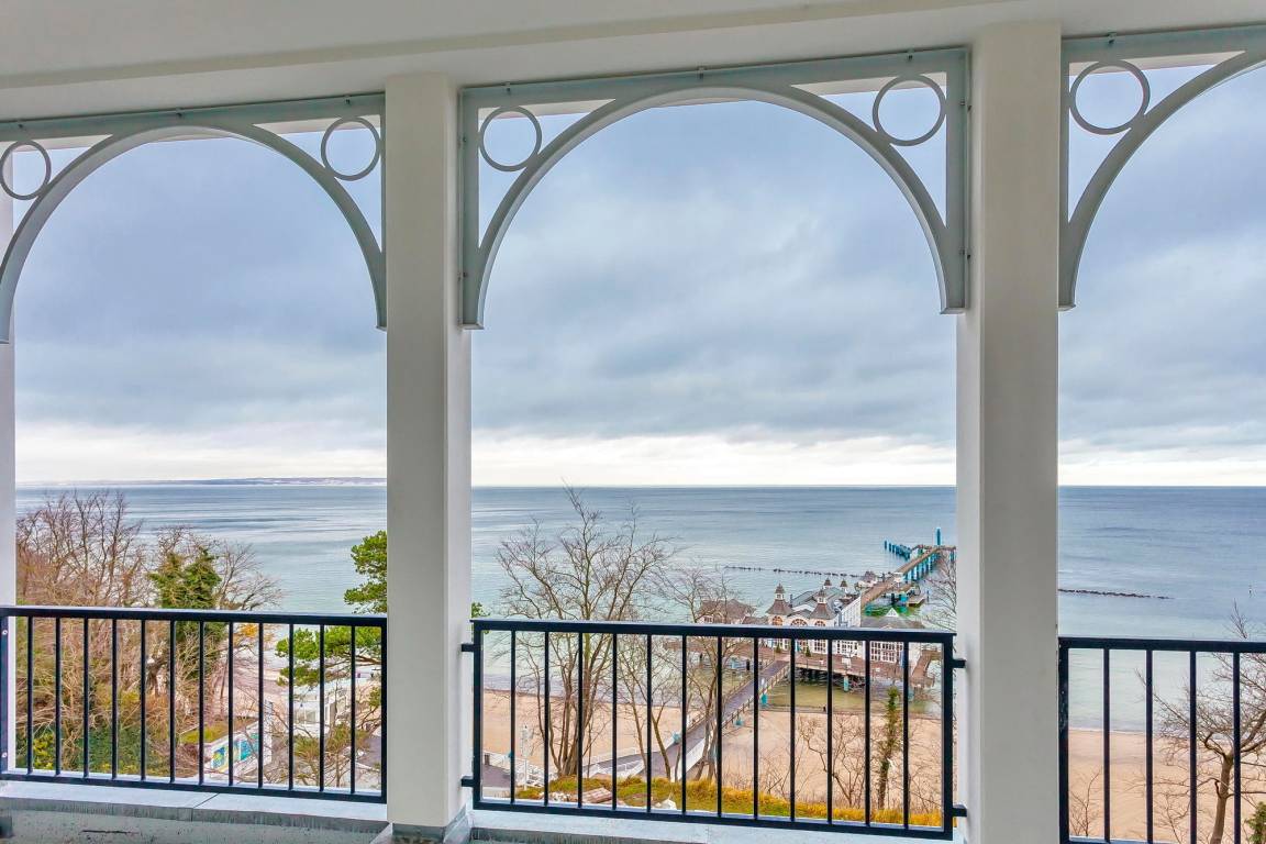 Am Hochufer über dem Hauptstrand mit der berühmten Seebrücke gelegen, verspricht das FIRST Ihnen schon von außen Luxus, Ambiente und Komfort vom Feinsten. Genau das setzt sich auch in Ihrem stolze 132 Quadratmeter fassenden Urlaubsdomizil fort: Überall nur beste Materialien, angenehm viel Licht und eine wohltuend elegante Atmosphäre. Und dazu eben dieser Meerblick! Schier grenzenlos schweift das Auge vom Grün des Steilufers über den Strand mit der Seebrücke und das Blau der Ostsee bis hinüber nach Sassnitz und zu den Kreidefelsen im Nationalpark Jasmund. Egal, ob buntes Frühjahr, traumhafter Sommer, stürmischer Herbst oder eisiger Winter - das muss man einfach gesehen haben.