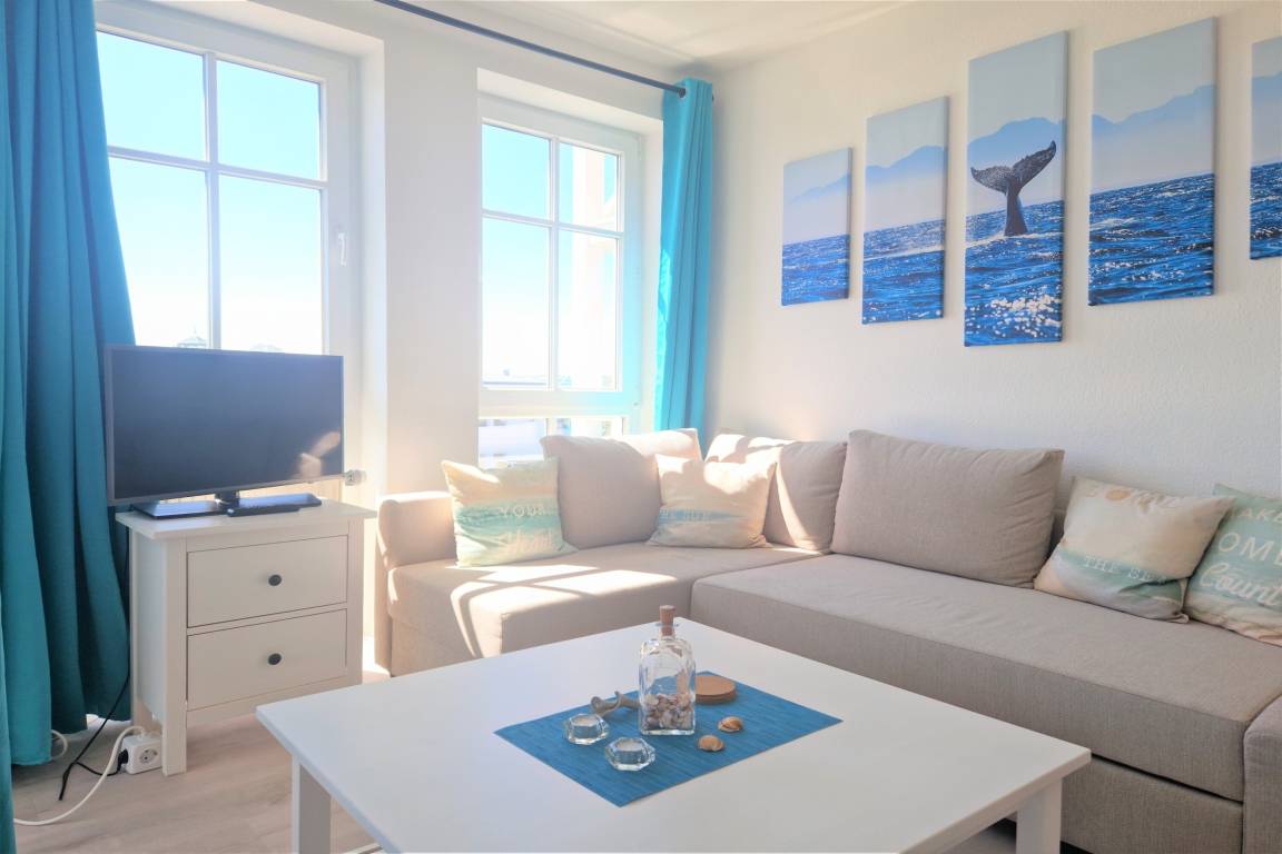 Die Ferienwohnung "Fewo 444" im Seepark Sellin bietet auf 50 m² Platz für maximal 4 Personen. Die Wohnung befindet sich in der 2. Etage des Hauses Moritzdorf.