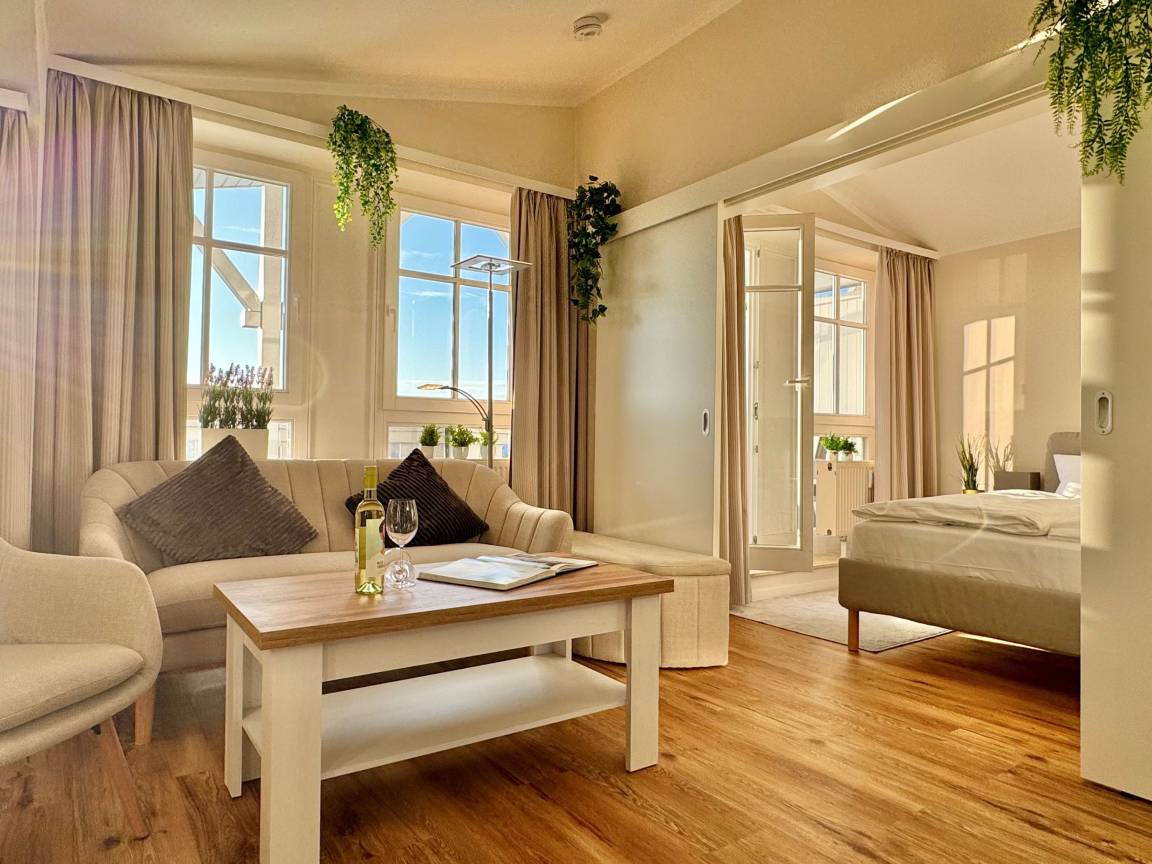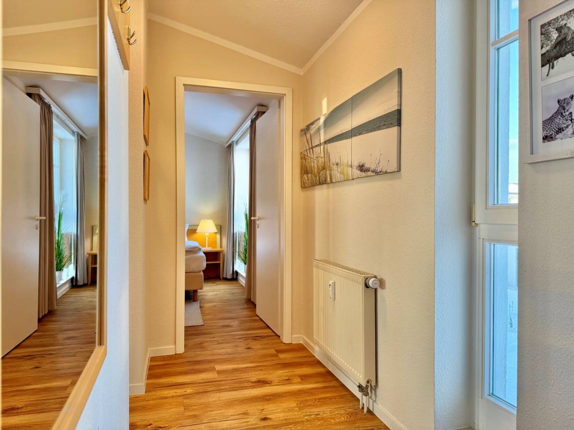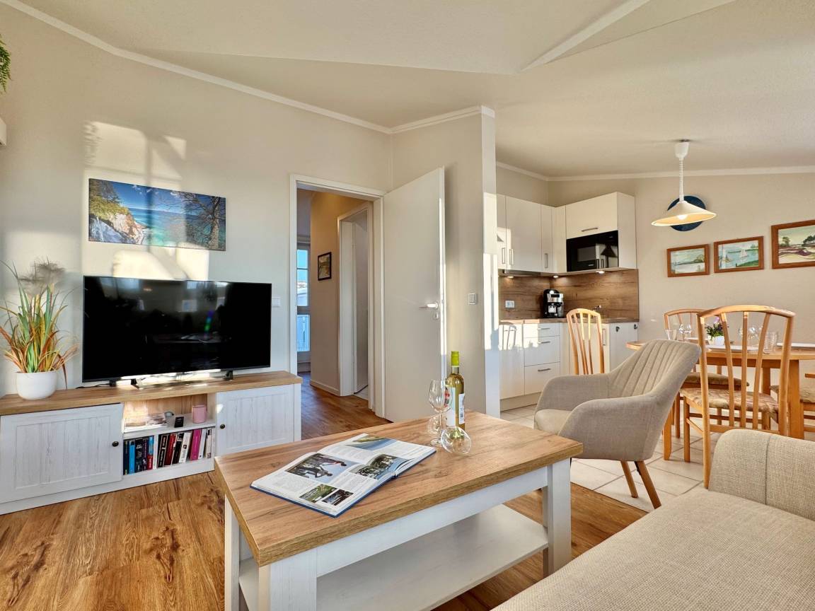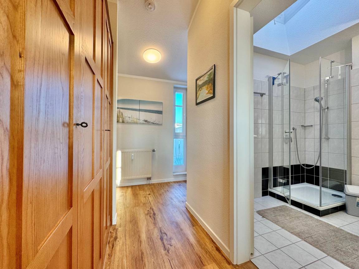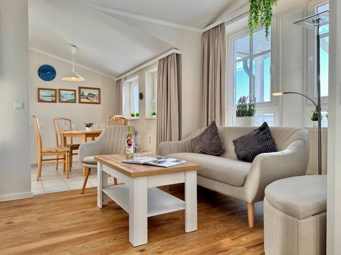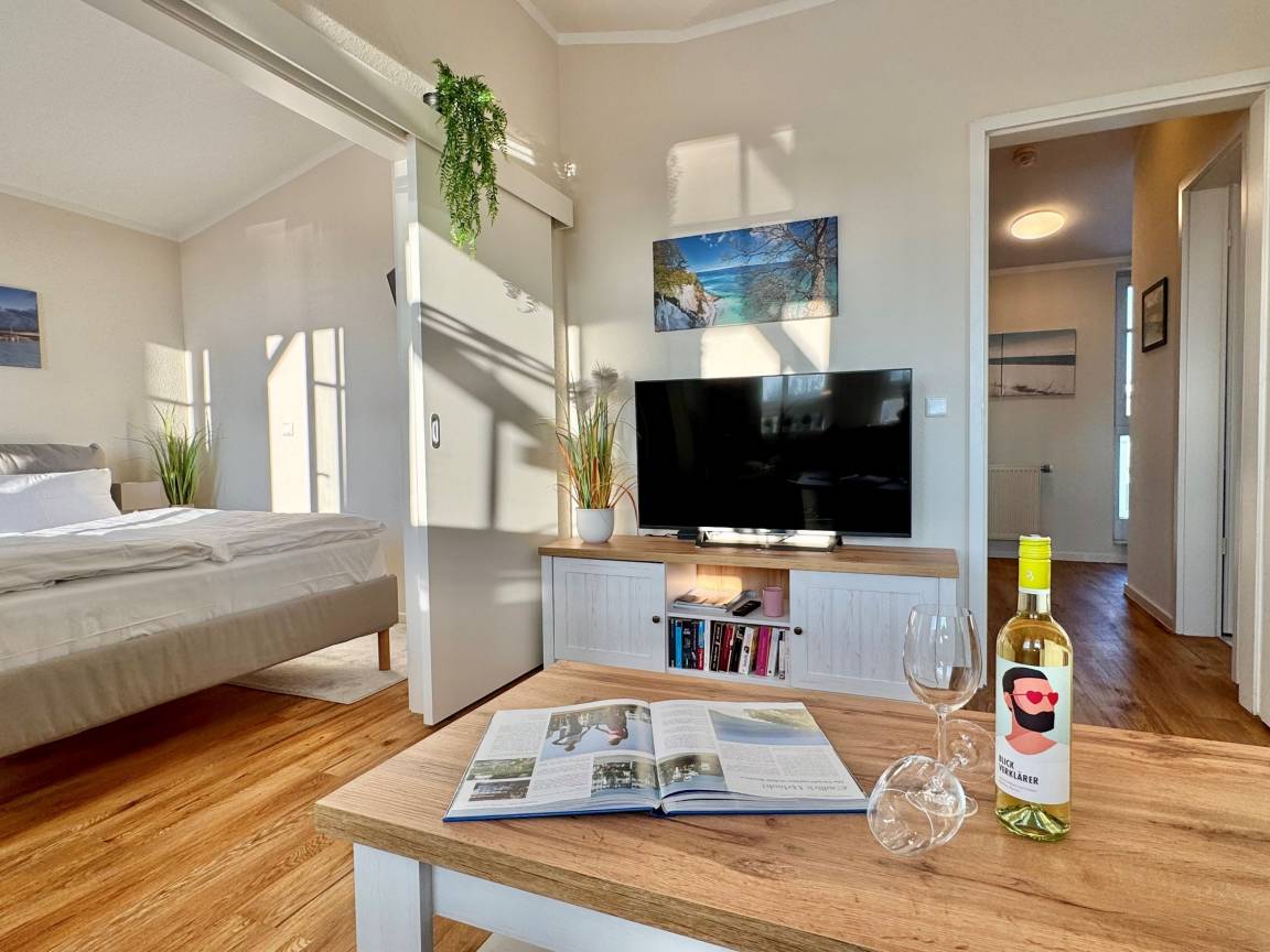 Die frisch renovierte Ferienwohnung 388 im Seepark Sellin bietet auf 57 m² modernen Wohnkomfort und ist ideal für bis zu 4 Personen geeignet. Sie befindet sich im Haus „Haus Having" und ist bequem per Aufzug in der 3. Etage erreichbar.