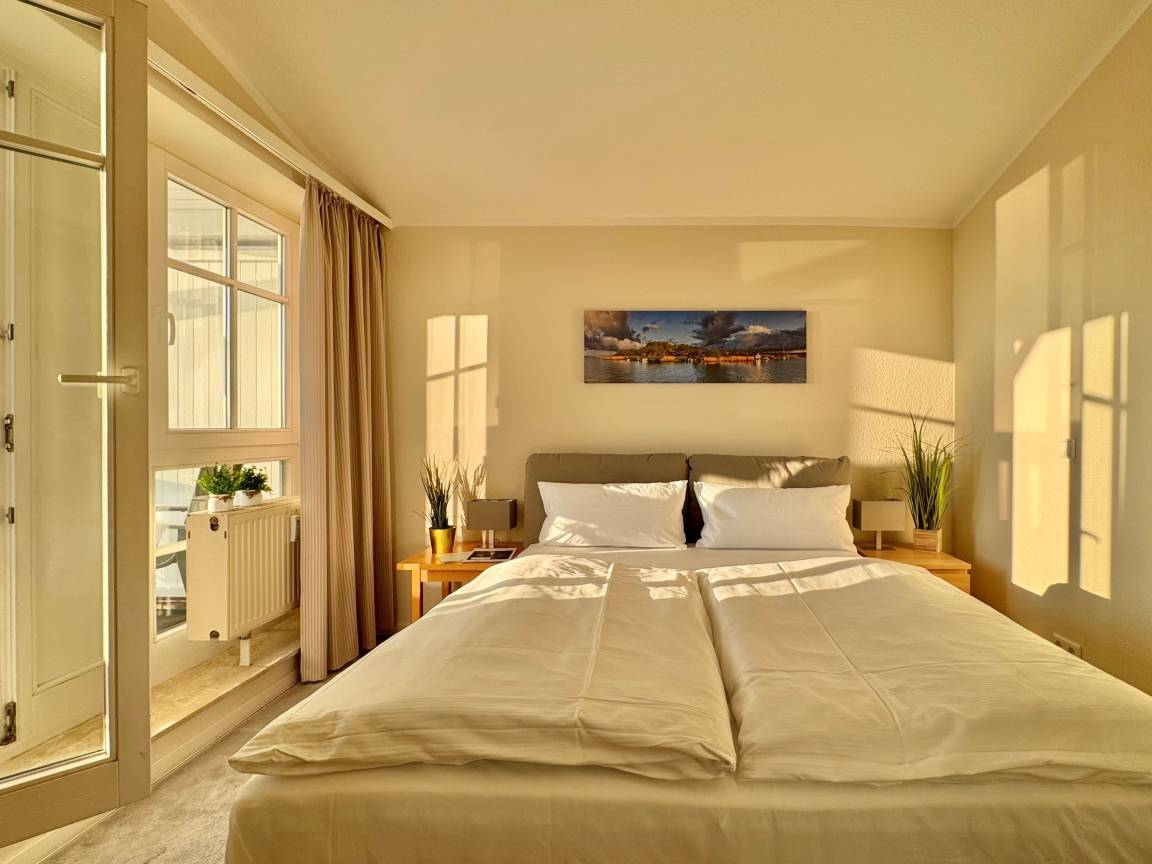 Zur weiteren Ausstattung gehören WLAN, Bettwäsche (im Preis inkludiert) sowie ein Tiefgaragenstellplatz für Ihr Fahrzeug. Für Radfahrer steht ein abschließbarer Fahrradkeller zur Verfügung. Auf Wunsch können Sie zudem unseren Brötchenservice in Anspruch nehmen.