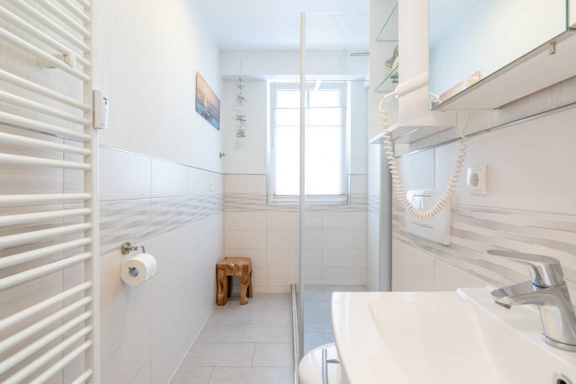 Die Wohnung verfügt über einen Flachbildfernseher, eine Kaffeemaschine (Filter), eine Mikrowelle, einen Geschirrspüler sowie eine offene Wohnküche. Die Bettwäsche ist im Preis inklusive. Genießen Sie die Sonne und die frische Seeluft auf dem Balkon.