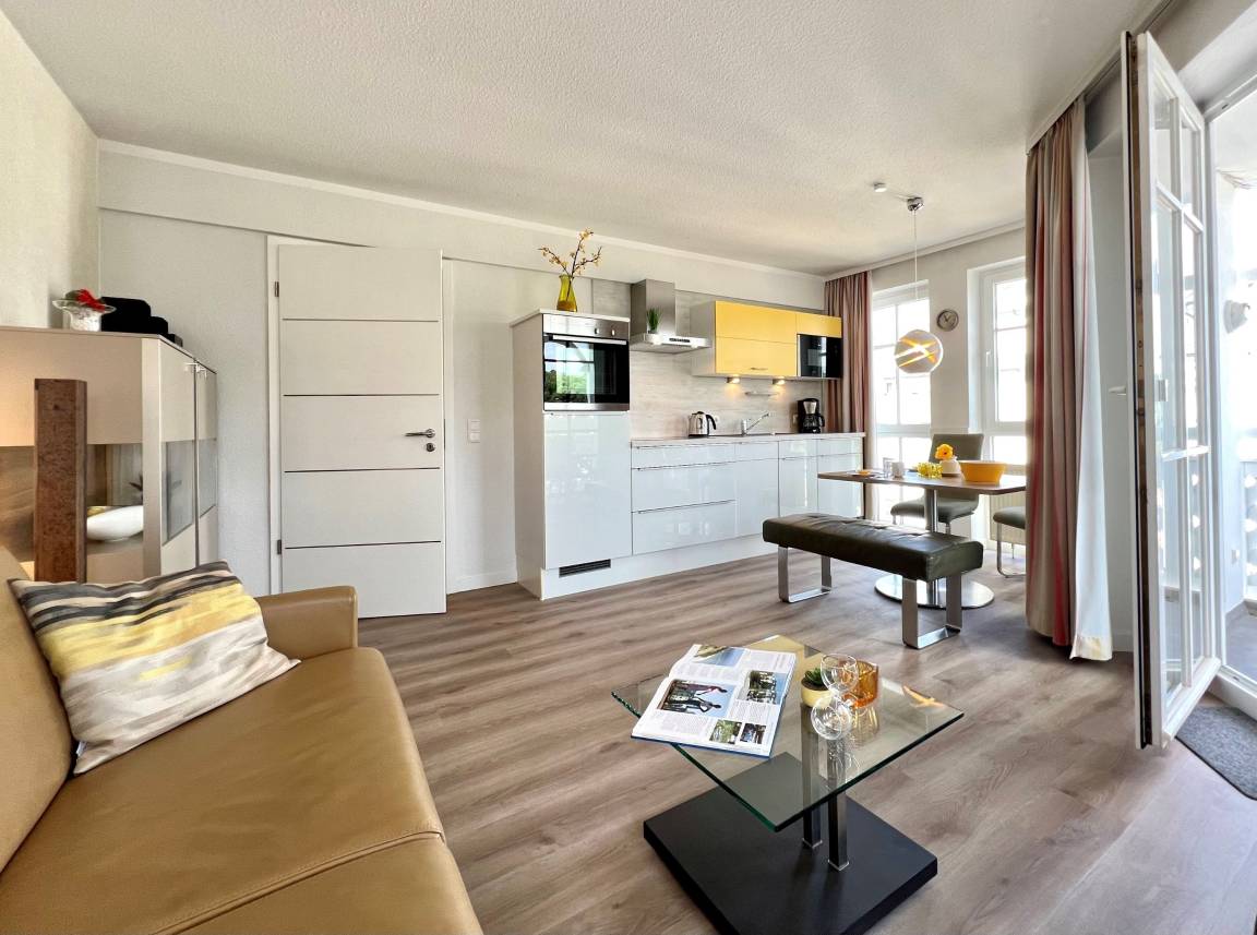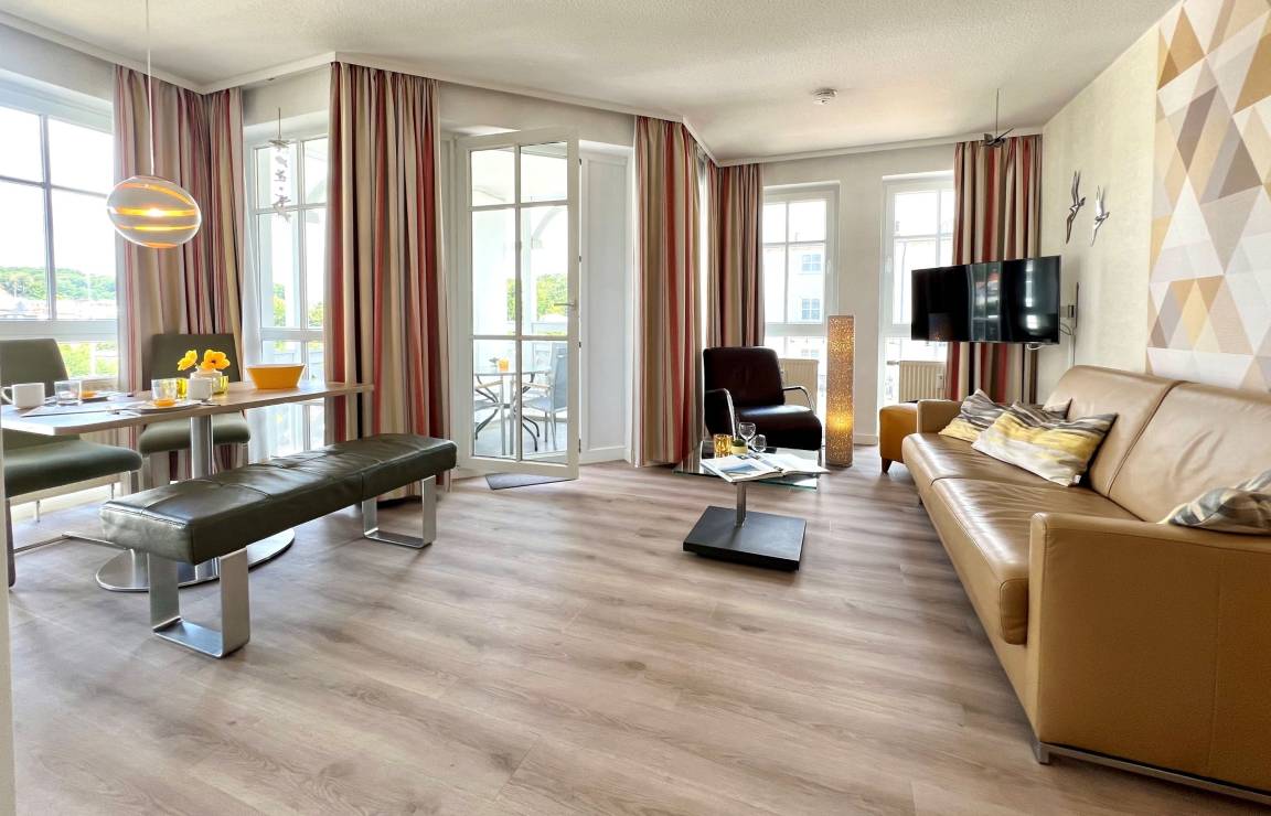 Die sehr geschmackvoll, hochwertig und gemütlich eingerichtete Ferienwohnung 510 im Seepark Sellin" bietet auf 50 m² Platz für bis zu 4 Personen und befindet sich im Haus "Haus Göhren" in Sellin. Sie liegt in der 2. Etage und ist bequem über Treppen erreichbar.