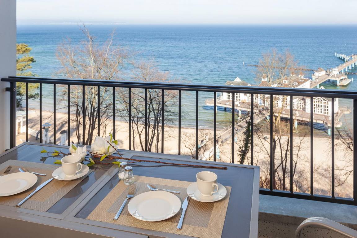 Im offen gestalteten Wohn- und Essbereich können Sie in einer gemütlichen Sitzecke mit einem Schlafsofa und 2 Sesseln die Ruhe und den fantastischen Panoramablick über die Ostsee genießen. Bei schönem Wetter lassen Sie den Blick von dem Balkon aus auf sich wirken, der jederzeit zu einem gemütlichen Frühstück mit Meeresbriese einlädt. Für zeitgemäße Unterhaltung im Wohnzimmer sorgen ein Flachbild-TV, eine Musikanlage, ein CD/DVD-Player und kostenfreies W-LAN.