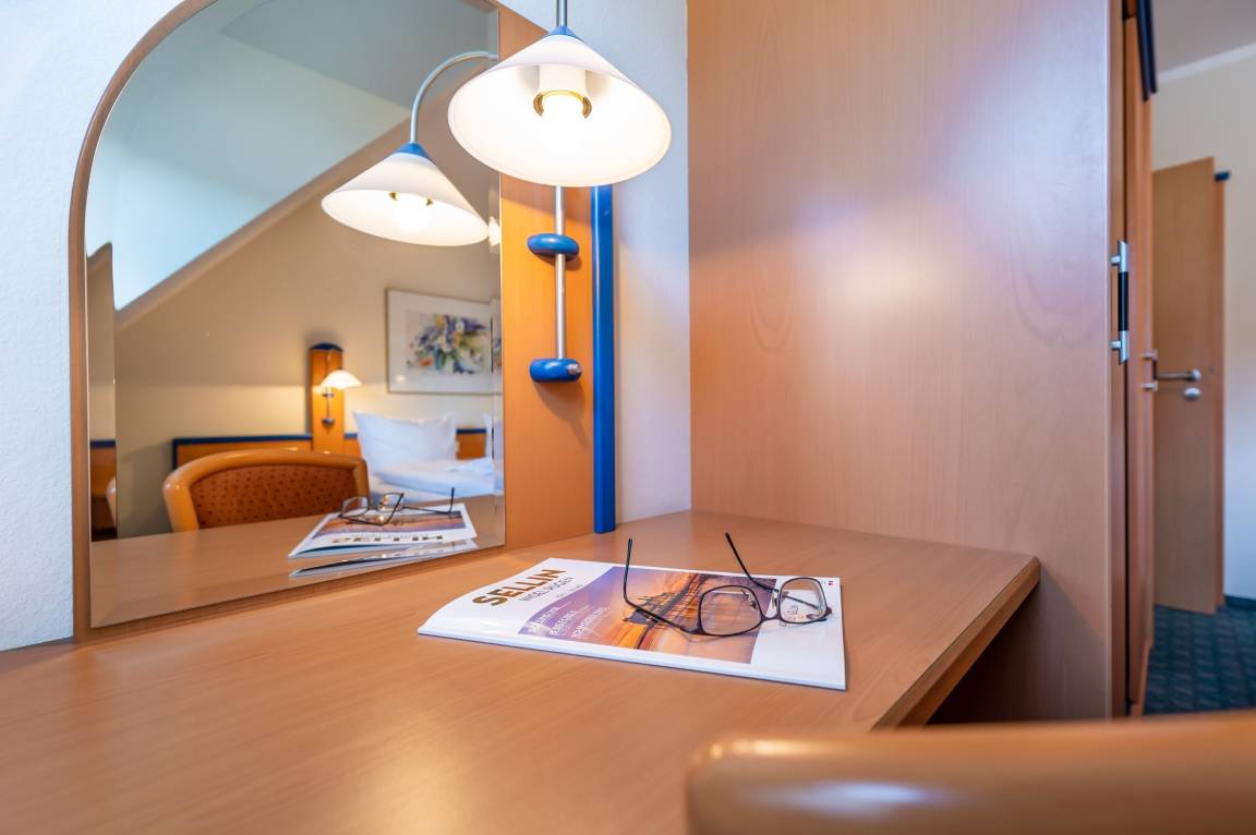 Im Schlafbereich steht ein komfortables Doppelbett und ein geräumiger Kleiderschrank und ein kleiner Schreibtisch bereit. Im hell erleuchteten Badezimmer befindet sich eine Dusche und ein WC.