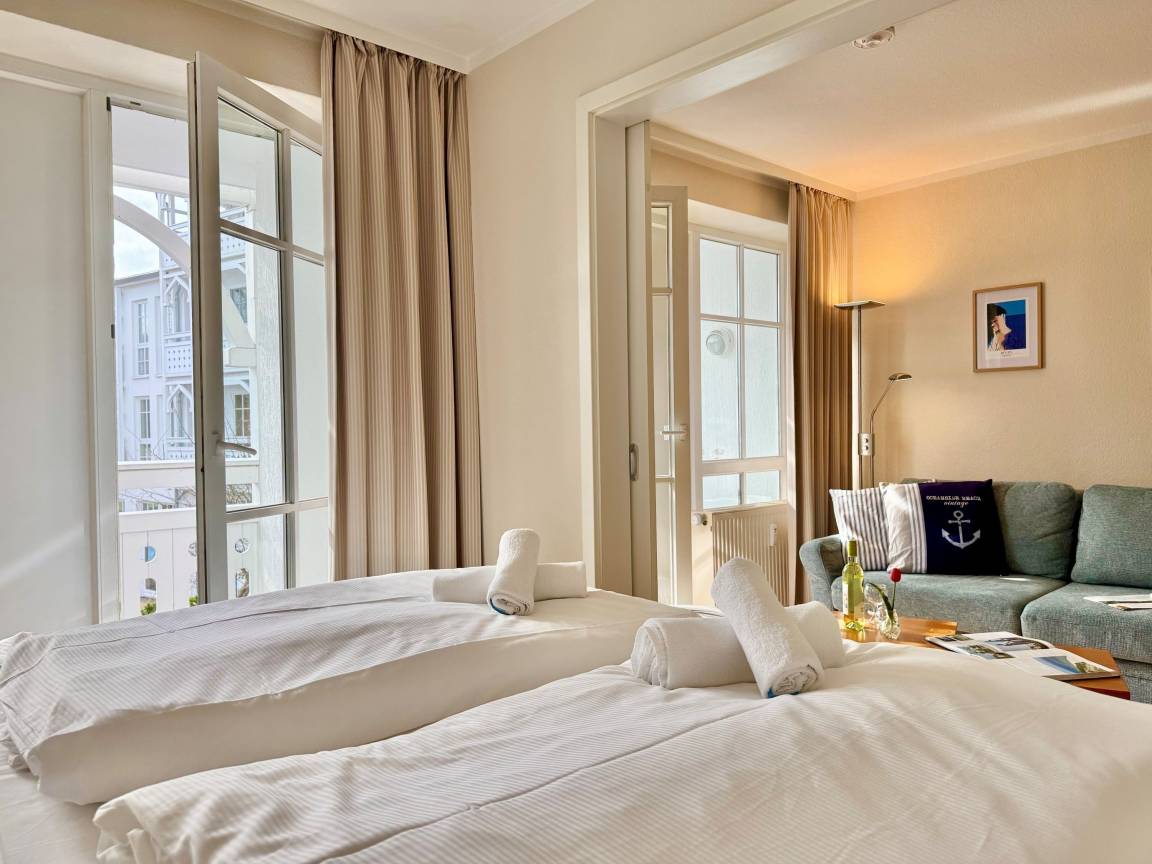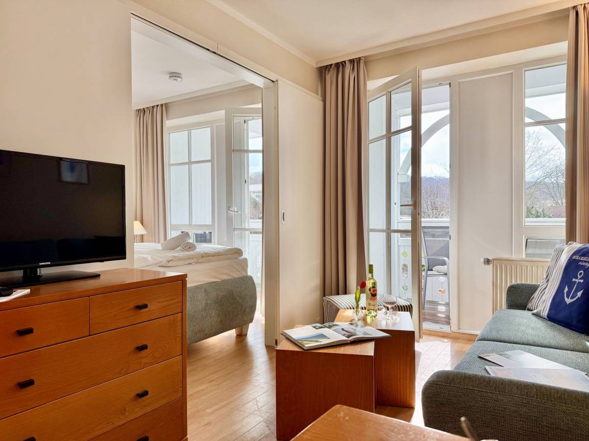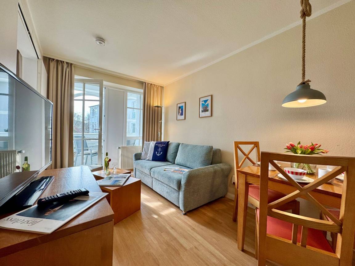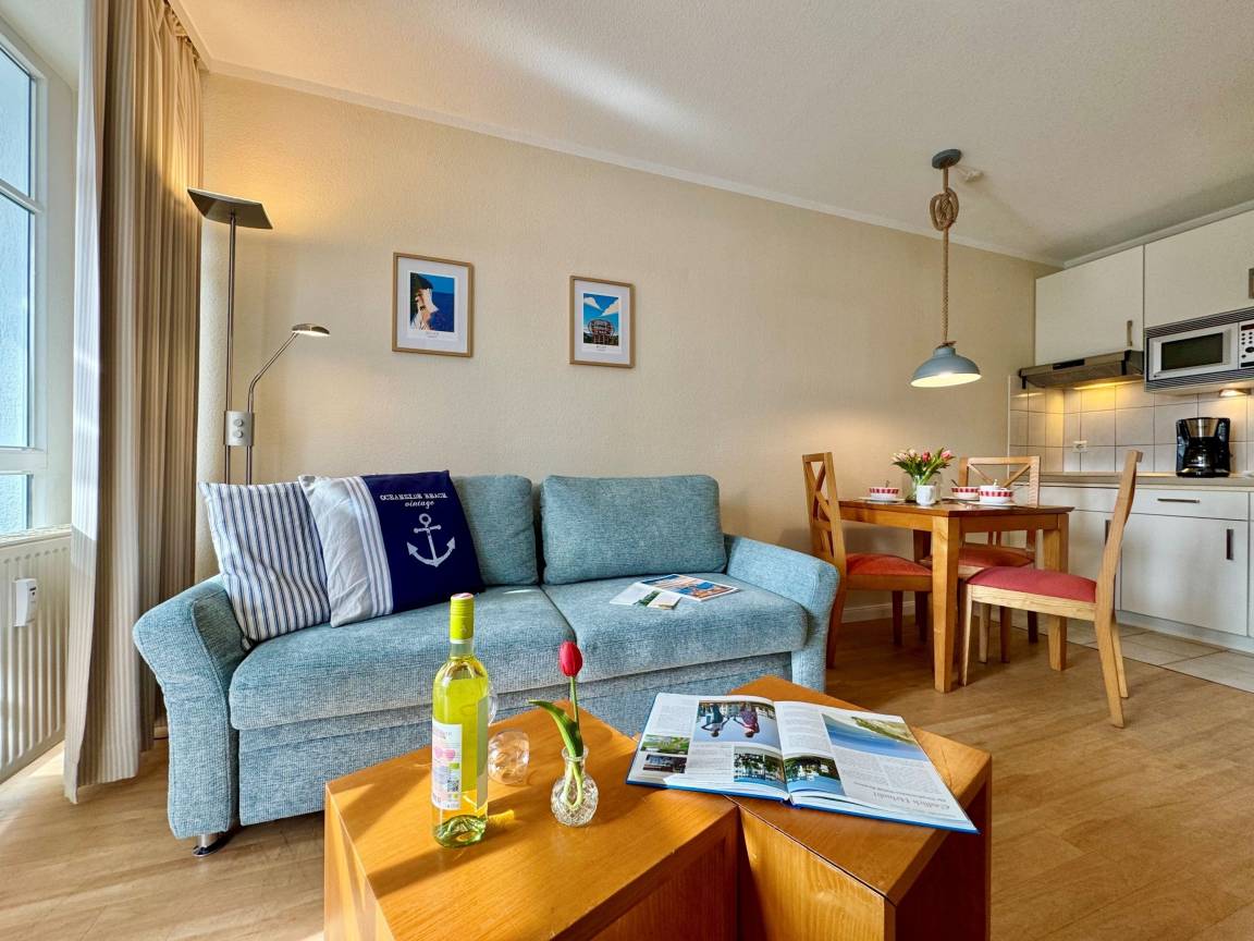 Die Ferienwohnung 608 befindet sich im Haus Mönchgut im beliebten Ostseebad Sellin. Sie bietet auf einer Wohnfläche von 32 m² Platz für bis zu 3 Gäste und lädt zu einem erholsamen Urlaub auf der Insel Rügen ein.
