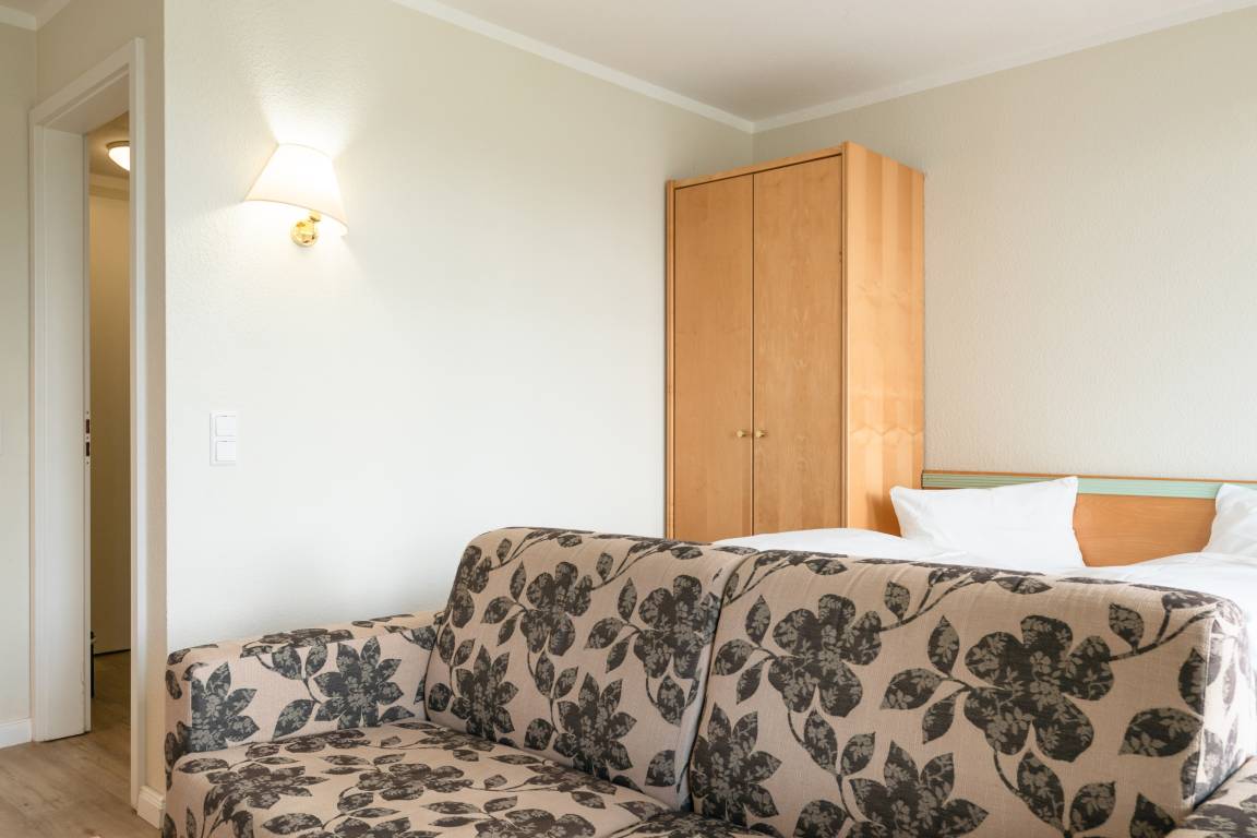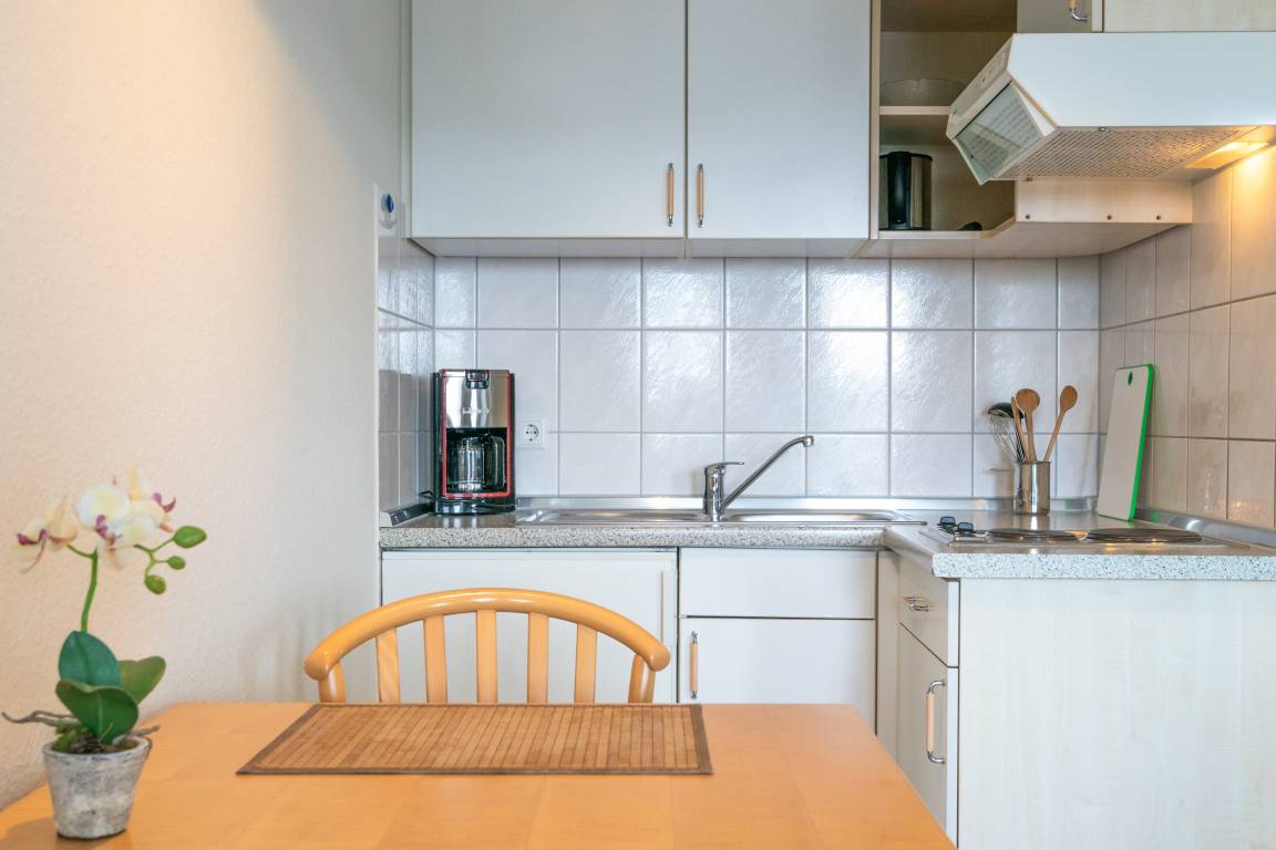 Die Ferienwohnung verfügt über kostenfreies WLAN und die Erstausstattung an Bettwäsche ist inklusive. Der kombinierte Wohn-/Schlafbereich mit Verdunklung verfügt über ein Doppelbett. Darüber hinaus verfügt die Ferienwohnung über ein Bad mit Dusche/WC und Föhn. Die voll ausgestattete Pantry mit Kaffeemaschine und Toaster lässt keine Wünsche offen. Ein Fernseher inkl. 3 Sky-Sender rundet die gute Einrichtung ab.