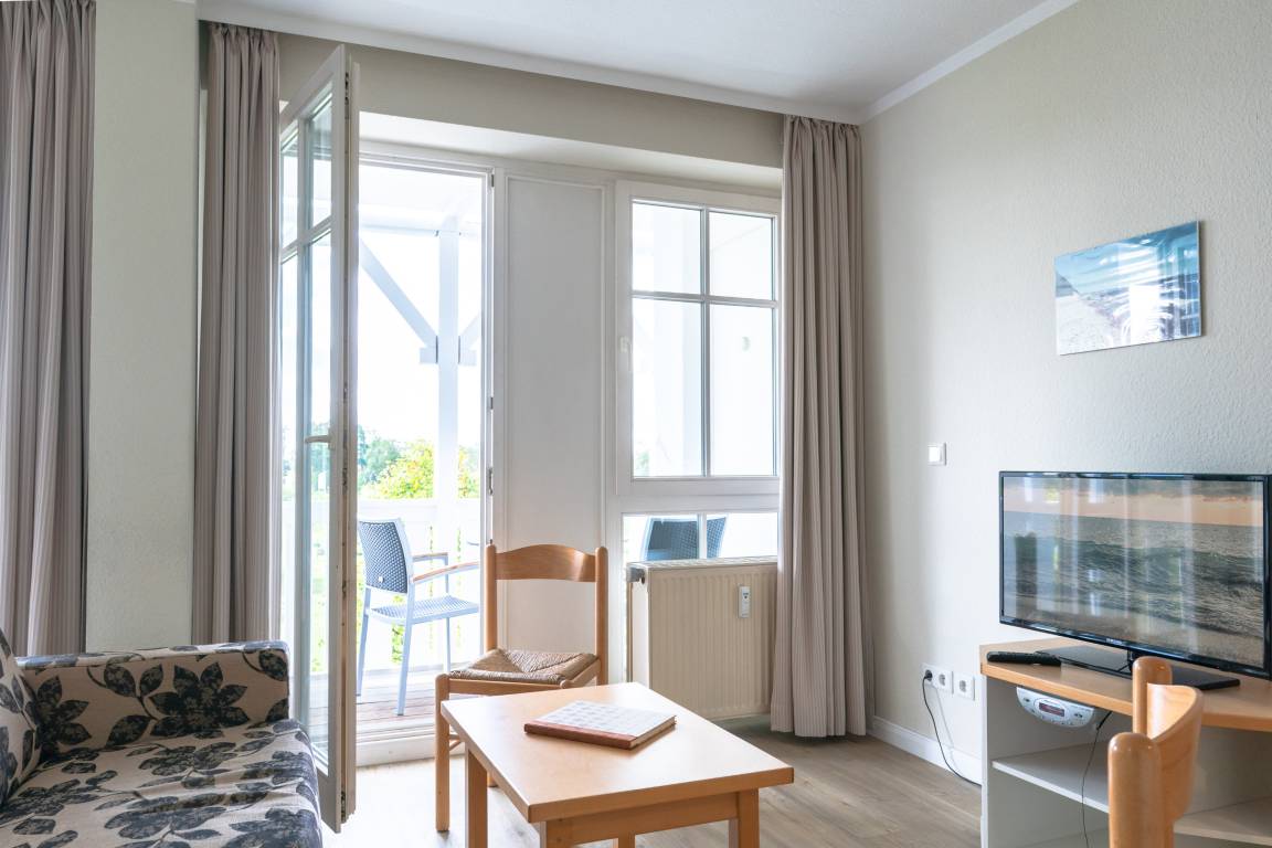 Nach einem erlebnisreichen Urlaubstag können Sie auf dem Balkon in Südwestlage Platz nehmen. Im Nichtraucher-Apartment ist ein mitreisendes Haustier gestattet.
