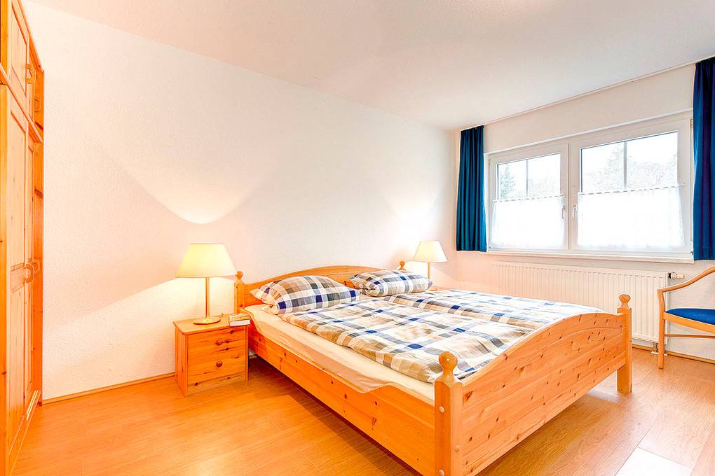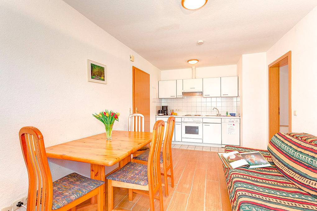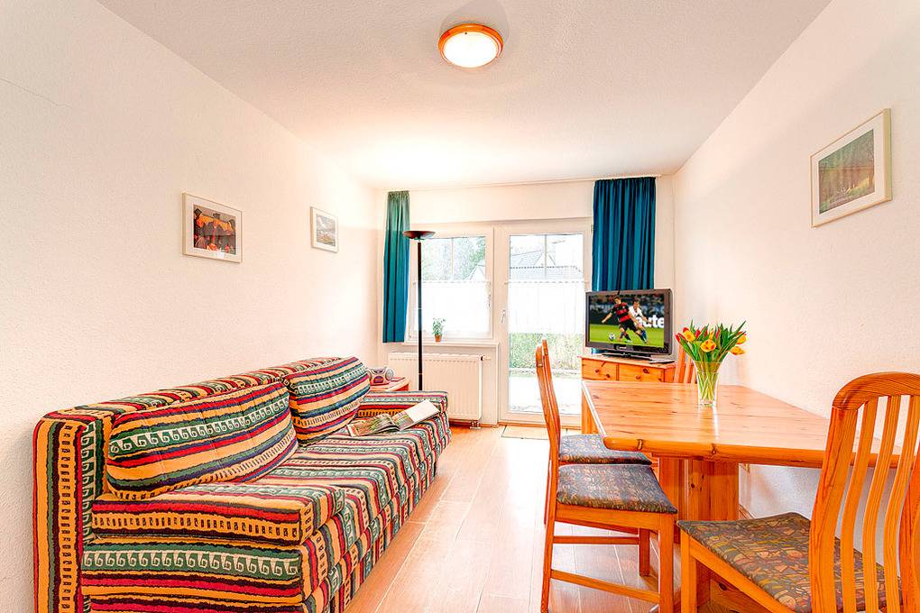 D 91.24 Wohnung 2-6 Pers.: 3-Zimmerwohnung, 50 qm Wohnfläche, Parterre. Wohn-/Essraum mit Couchgarnitur (Schlafcouch 2 Pers.), Esstisch, Küchenzeile. Doppelzimmer. 2-Bettzimmer. Bad/WC. Schöne Terrasse mit Sitzmöbeln.