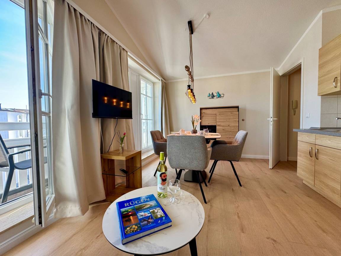 Die Ferienwohnung befindet sich im Seepark Sellin im 3. Obergeschoss der schönen Ferienanlage. 900 m entfernt locken Ostsee und Strand sowie der Selliner See. Der Bäcker und die Einkaufsmöglichkeiten sind fußläufig in der Ferienanlage gut zu erreichen.