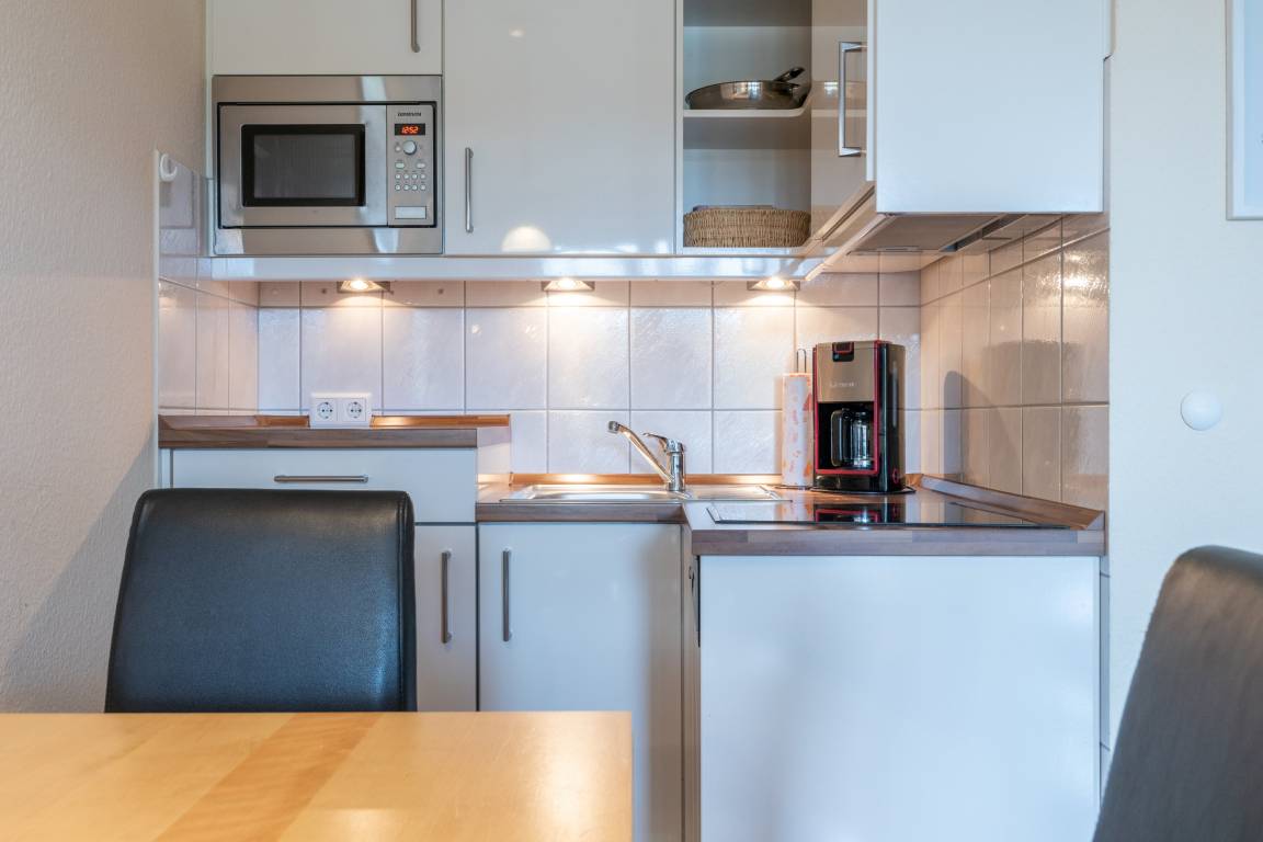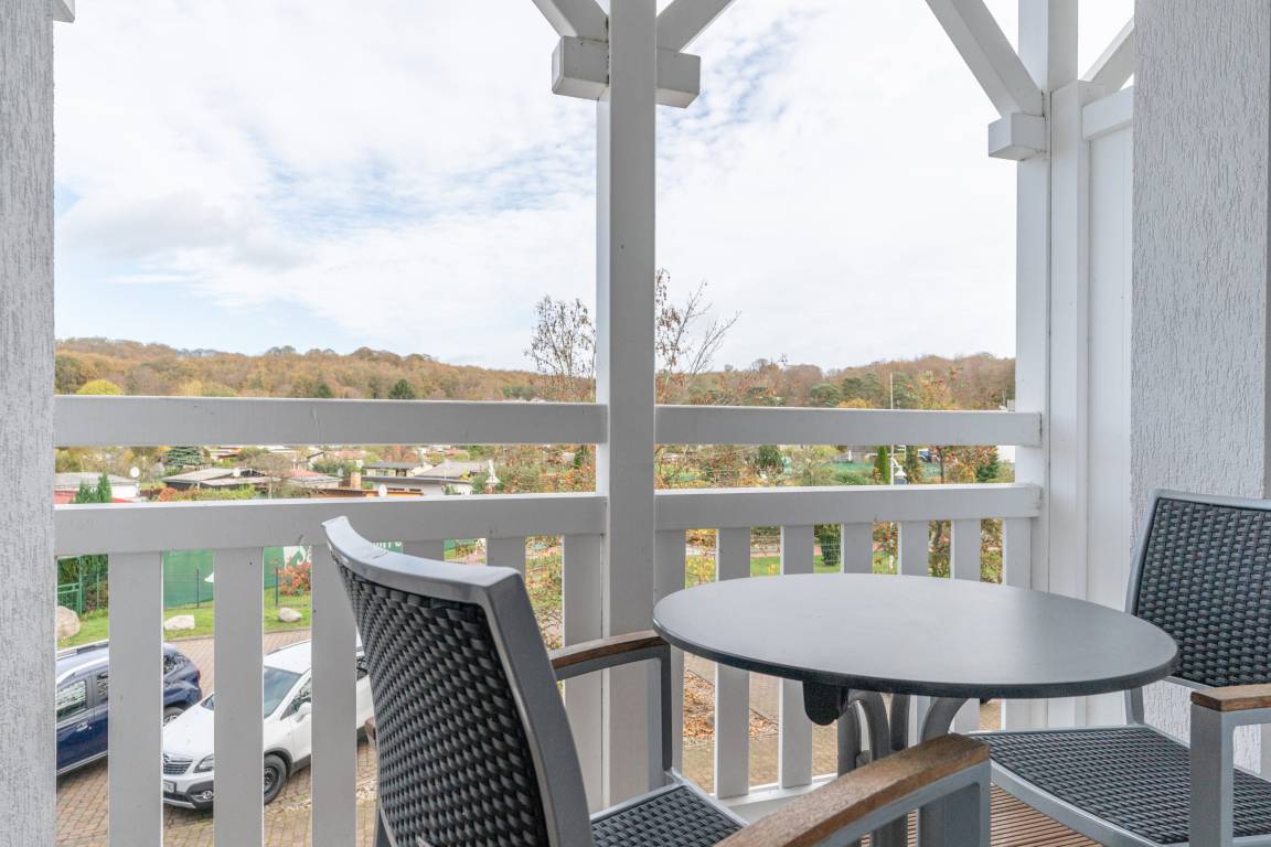 Nach einem erlebnisreichen Urlaubstag können Sie auf dem Balkon in Nordostlage Platz nehmen. Der Ausblick und die Sitzgruppe sorgen hier für ein wunderbares Urlaubsgefühl. Im Nichtraucher-Apartment sind Haustiere nicht gestattet.