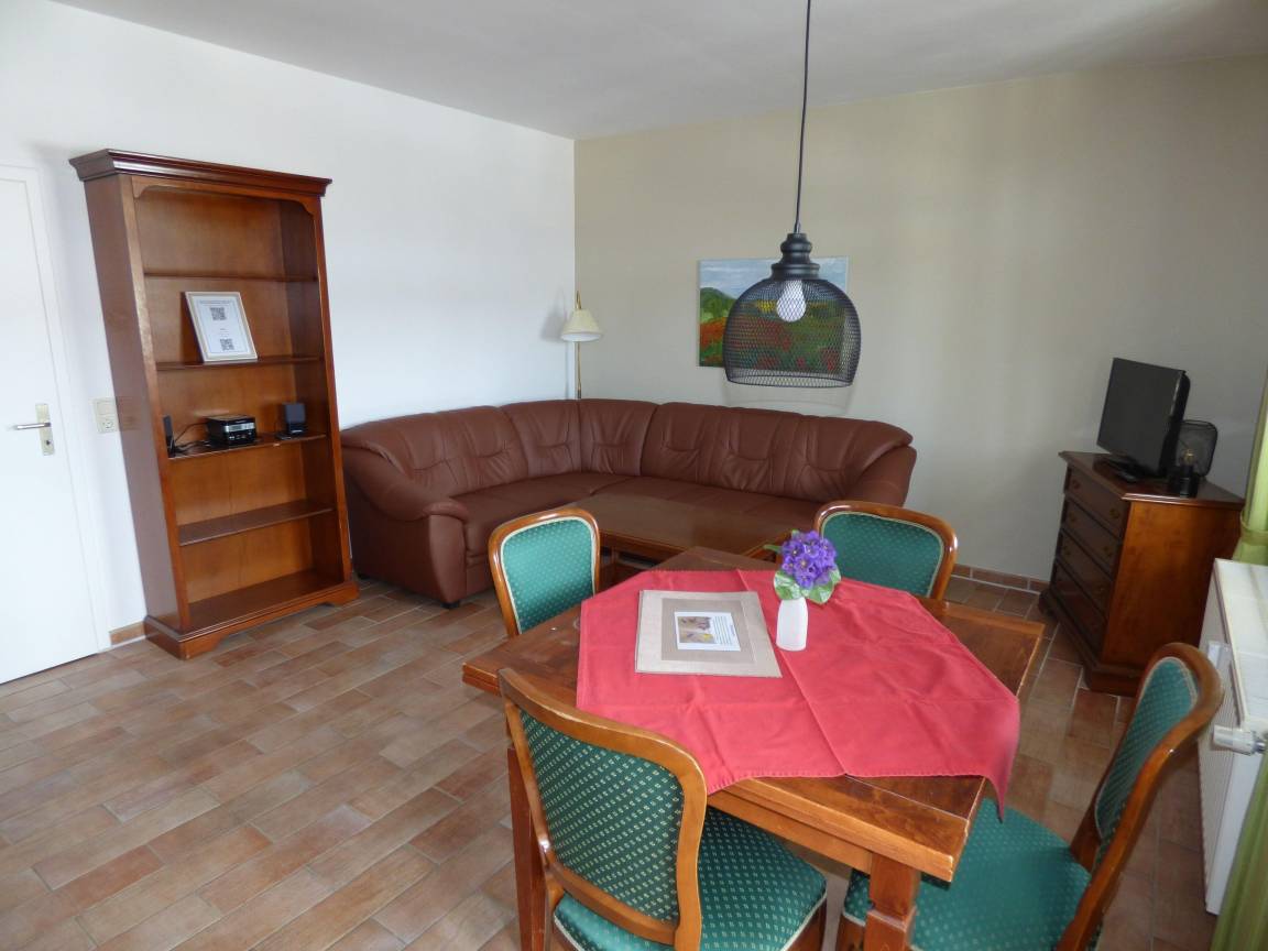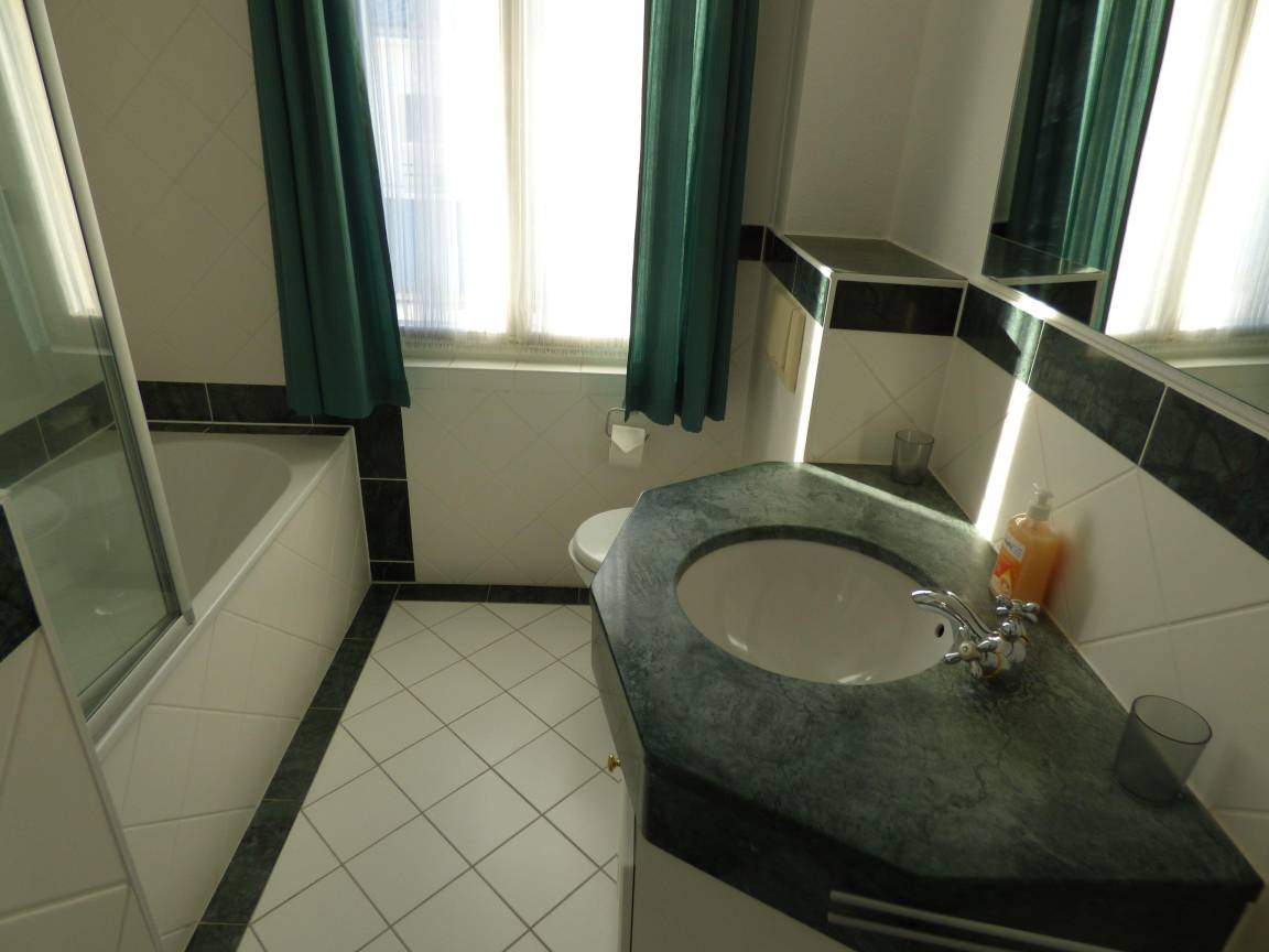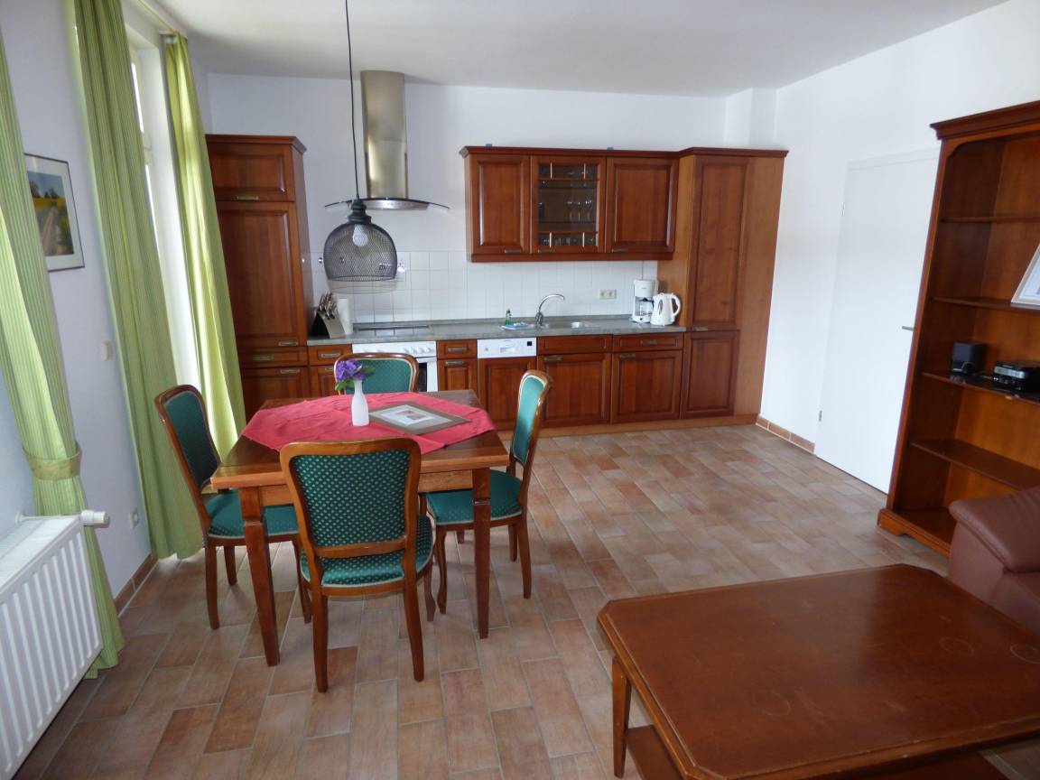 Das Appartement besteht aus 2 Räumen mit ca. 50 qm Wohnfläche und einem schönen Balkon in Bäderarchitektur zur Morgensonne. Die Ausstattung ist elegant und geschmackvoll. Die Wohnungen verfügen über je einen Wohnraum mit integrierter Küchenzeile (gut ausgestattet mit u.a. Geschirrspüler, Toaster, Kaffeemaschine, Wasserkocher und Backofen). Im Wohnraum befindet sich eine Couch mit Sessel, TV, einem Esstisch. Das Schlafzimmer ist mit einem Doppelbett (180cm) ausgestattet. Das Bad hat eine Badewanne. Die Wohnungen sind ideal für 2 Personen geeignet. Ihr Auto können Sie kostenfrei in dieser ruhigen Seitenstraße abstellen.