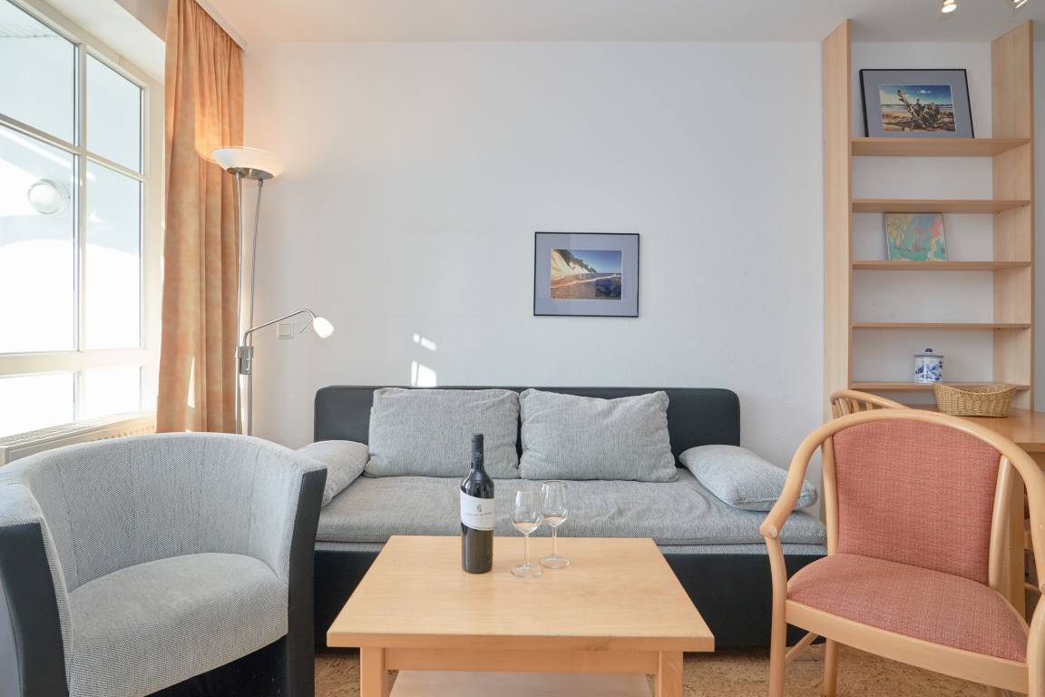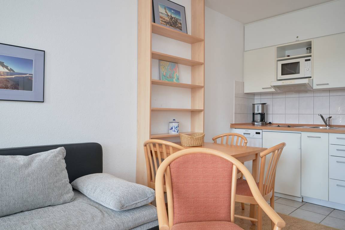 Die Ferienwohnung verfügt über kostenfreies WLAN und die Erstausstattung an Bettwäsche ist inklusive. Das Schlafzimmer verfügt über ein Doppelbett, im Wohnzimmer befindet sich zusätzlich eine Doppelschlafcouch. Darüber hinaus verfügt die Ferienwohnung über ein Bad mit Dusche/WC. Die voll ausgestattete, offene Küche mit Geschirrspüler, Mikrowelle, Kaffeemaschine und Toaster lässt keine Wünsche offen. Ein Fernseher inkl. 3 Sky-Sender rundet die Einrichtung ab. Nach einem erlebnisreichen Urlaubstag können Sie auf dem Balkon in Südostlage Platz nehmen. Der Ausblick und die Sitzgruppe sorgen hier für ein wunderbares Urlaubsgefühl. Im Nichtraucher-Apartment sind Haustiere nicht gestattet.