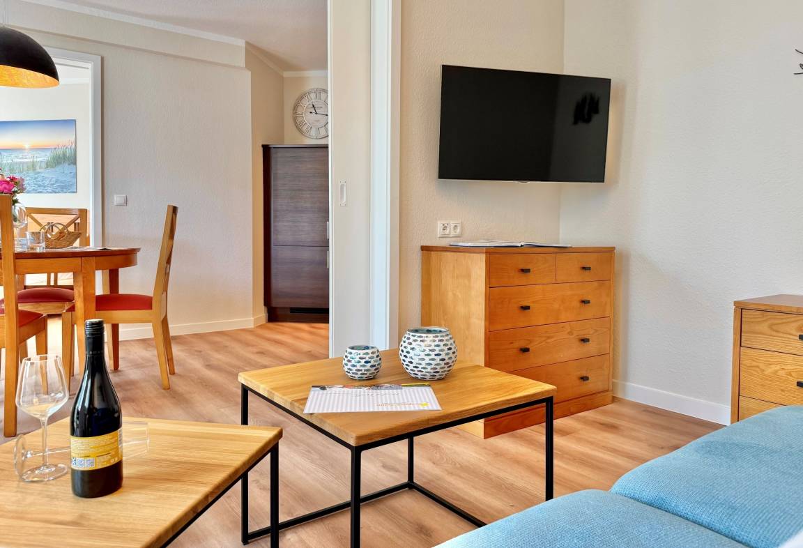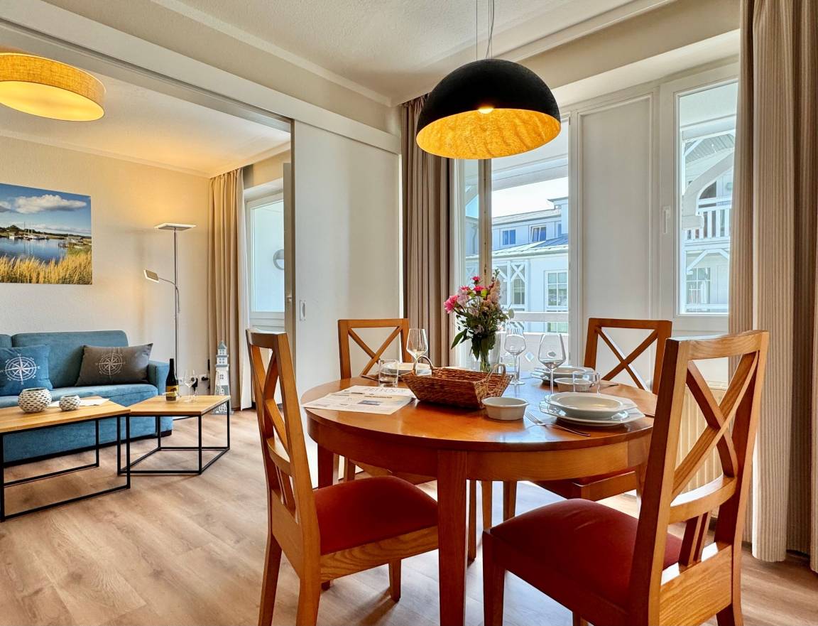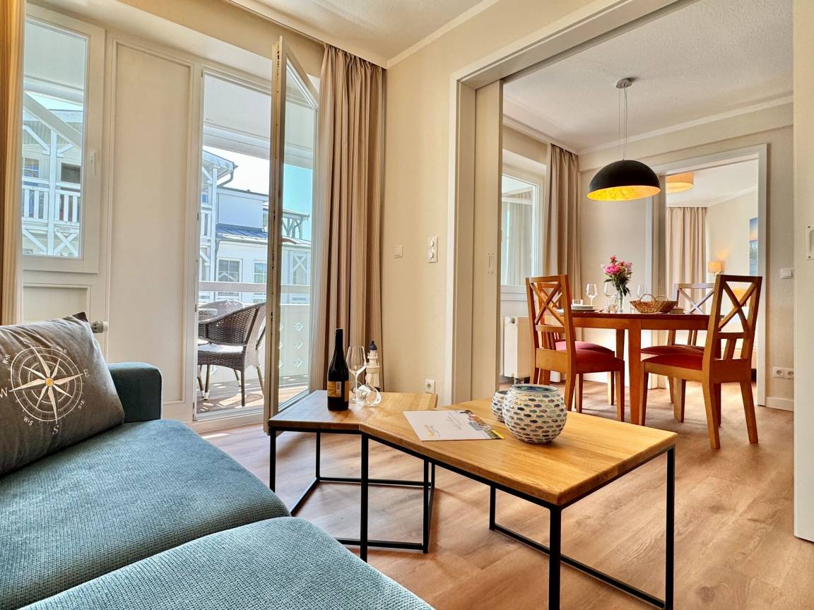 Die frisch und aufwändig renovierte Ferienwohnung 255 befindet sich im Haus Seedorf im beliebten Seepark Sellin. Auf 52 m² Wohnfläche bietet sie Platz für bis zu 4 Personen und überzeugt durch modernen Komfort und eine hochwertige Ausstattung. Die Wohnung liegt in der 2. Etage und ist bequem zu erreichen.