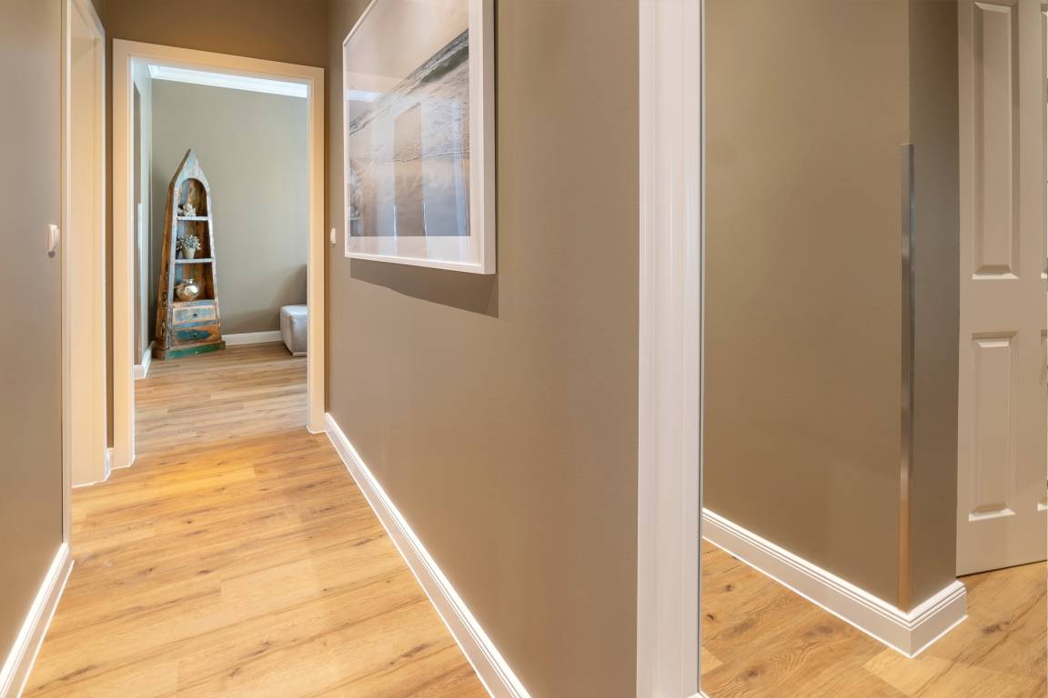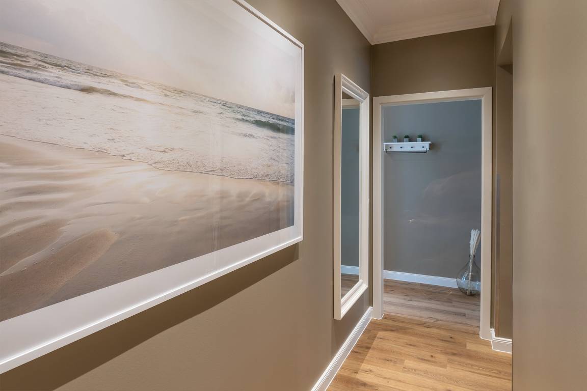 Als Rückzugsort erwartet Sie im Schlafzimmer ein Boxspringbett mit 180x200 cm und ein großer, geräumiger Kleiderschrank. Die Ferienwohnung verfügt über ein Bad mit Dusche, sowie einem separaten WC mit Handwaschbecken.