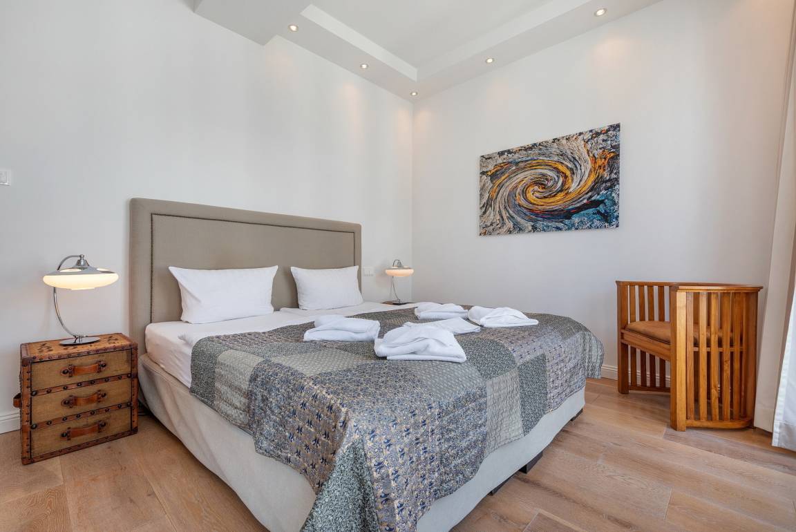Das Penthouse "Seaside" erstreckt sich über das erste und zweite Dachgeschoss der Villa Theres und wartet auf stolzen 155 Quadratmetern mit Eleganz und Luxus pur auf. Schon beim Eintreten überrascht Sie Ihr Urlaubsdomizil mit seiner angenehmen Helligkeit, den hohen Decken, einer hochwertigen Eichendielung und dem perfekt abgestimmten Miteinander von Formen, Farben und Materialien.