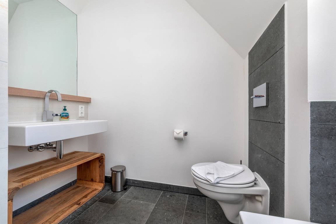 Zwei Schlafzimmer mit komfortablen Doppelbetten strahlen elegante Behaglichkeit aus. Die bodentiefen Fenster lassen viel Tageslicht ein, können aber selbstverständlich auch verdunkelt werden. Über eine Flügeltür gelangen Sie auf die nordöstlich ausgerichteten Balkone. Dem Schlafzimmer angeschlossen ist jeweils ein Ensuite-Bad, dessen dunkelgrauen Ceralith-Bodenplatten, die fugenlos wie aus einem Stück gegossen erscheinen, schon im ersten Moment von edlem Badevergnügen künden. Villeroy [&] Boch- Waschbecken mit Dornbracht Armaturen, das Wannenbad bzw. die großzügige, ebenerdige Dusche und die wohnungseigene Finnische Sauna sind Annehmlichkeiten, die man gern nutzt. Ein separates Gäste-WC im Eingangsbereich ist ebenfalls vorhanden.