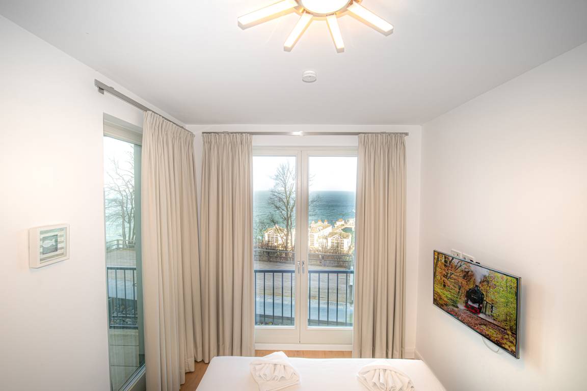 Die Ferienwohnung mit dem Namen "FIRST Diamond" bietet auf 89 m² ausreichend Platz für bis zu 4 Personen. Sie befindet sich in der 2. Etage des Hauses "FIRST Sellin" und verfügt über 1 Schlafzimmer und 1 Badezimmer. Zur Ausstattung dieser schönen Wohnung gehört selbstverständlich auch ein Tiefgaragenstellplatz. Eine Kaffeemaschine und eine Spülmaschine stehen Ihnen in der Küchenzeile zur Verfügung. Aus der gesamten Wohnung genießen Sie einen traumhaften Panorama-Meerblick. Zusätzlich zum saisonal geöffneten Außenpool, steht Ihnen ganzjährig und kostenfrei ein Sky-Infinitypool (Indoor auf dem Dach des Gebäudes) zur Verfügung. Außerdem gibt es einen WLAN Anschluss, der Ihnen eine unkomplizierte Internetnutzung ermöglicht. Entspannung finden Sie auch im hauseigenen Saunabereich, welcher ebenfalls kostenfrei zur Ausstattung gehört. Die Ferienwohnung ist sowohl für Familien als auch für Radfahrer geeignet. Die Ortsmitte ist nur ca. 100 m entfernt und der Strand ist nur ca. 80 m entfernt. Ebenso befinden sich eine Vielzahl sehr guter Restaurants in unmittelbarer Nähe. Hier bleiben also keine Wünsche offen.