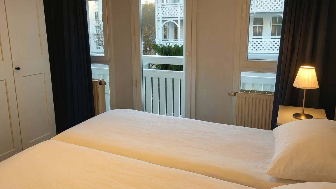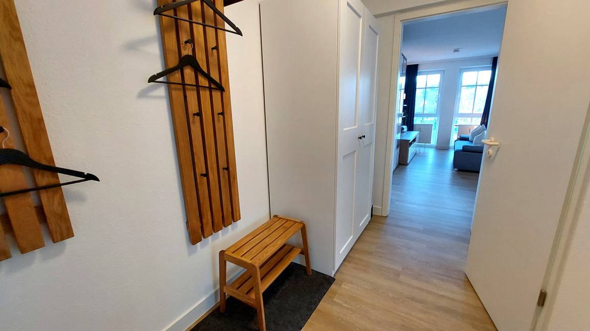 Die Nichtraucher-Wohnung mit der Bezeichnung 60RB463 befindet sich im ersten Stock des Hauses "Altensien". Sie ist 50 Quadratmeter groß und bietet Platz für bis zu 4 Personen. Der Flur führt zu verschiedenen Räumen, wie dem Schlafzimmer, dem Badezimmer und dem großen, hellen Wohnbereich. Das moderne Tageslichtbad ist mit einer fast ebenerdigen Dusche, einem Waschtisch, einem WC und einem Fön ausgestattet. Im Schlafzimmer gibt es ein Doppelbett mit Nachttischen und einen großen Kleiderschrank. Außerdem gibt es einen schmalen separaten Balkon.
