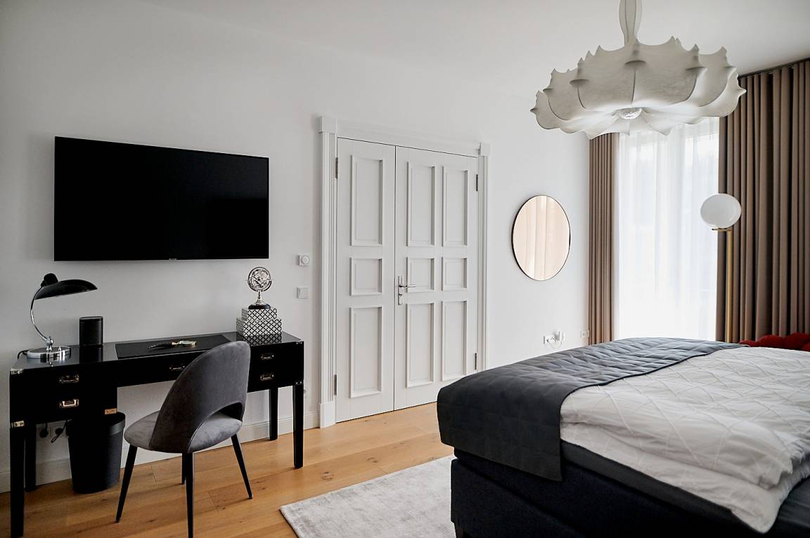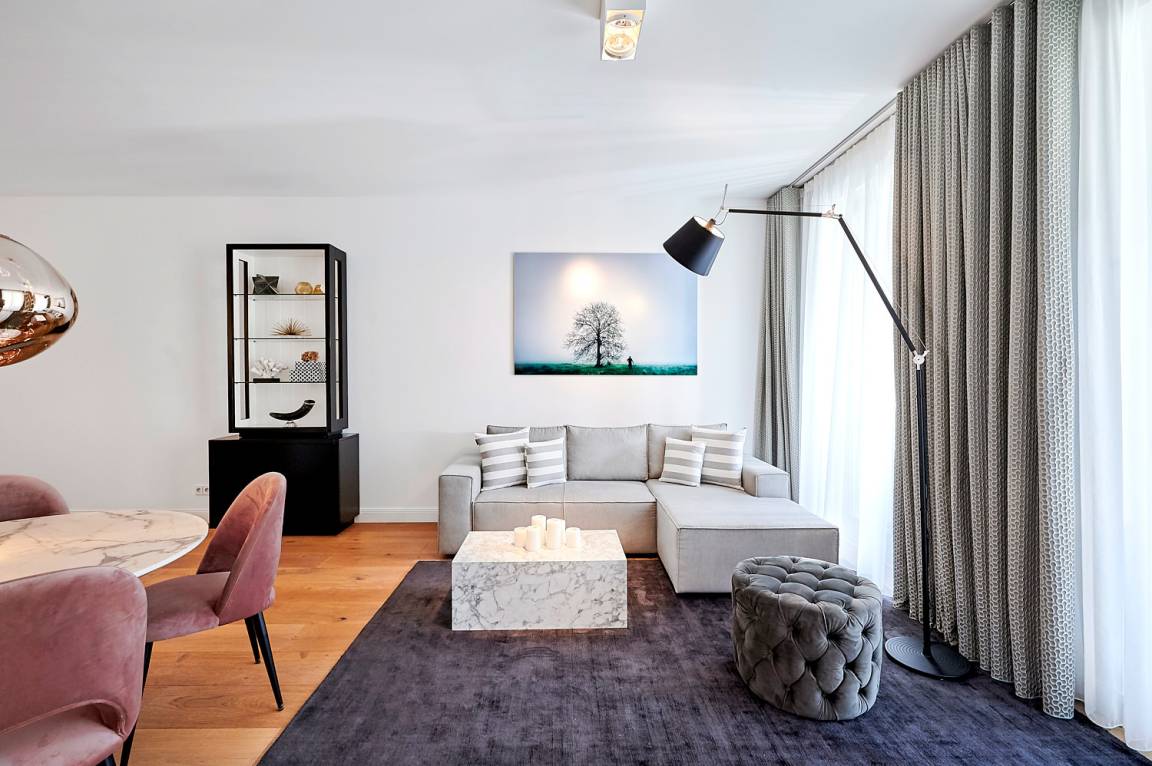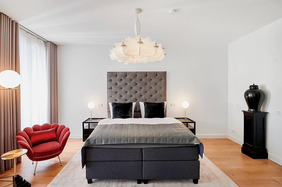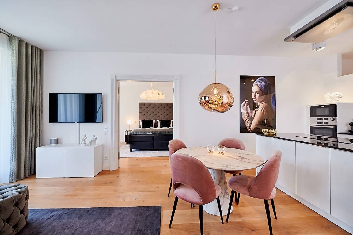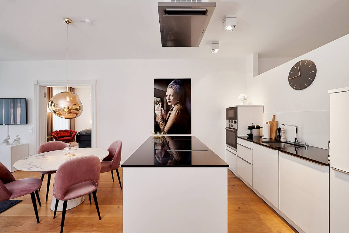 Die Ferienwohnung „Prinzessin Luise" befindet sich in der dritten Etage und wird bequem über den Lift aus der Tiefgarage erreicht. Auf 74m² Wohnfläche bietet sie ausreichend Platz für 3 Personen. Die hochwertige Ausstattung lässt keine Wünsche offen. So finden Sie, unter anderem, eine hochwertige Einbauküche mit angrenzendem Wohnbereich vor, welcher durch die großen Fensterfronten mit Licht nahezu durchflutet wird. Hochwertige und ausgesuchte Materialien unterstützen den hochwertigen Wohneindruck zusätzlich. Auf dem Dach des „FIRST SELLIN" stehen Ihnen sowohl ein großzügiger Sky-Pool, als auch eine Saunalandschaft zur Verfügung. Der Blick von dort auf die Ostsee lässt Ihren Urlaub zu einem wahrlichen Traumurlaub werden.In der Sommersaison können Sie darüber hinaus im hauseigenen Außenpool (solar beheizt) relaxen oder sich natürlich in die Fluten der Ostsee am Strand stürzen.